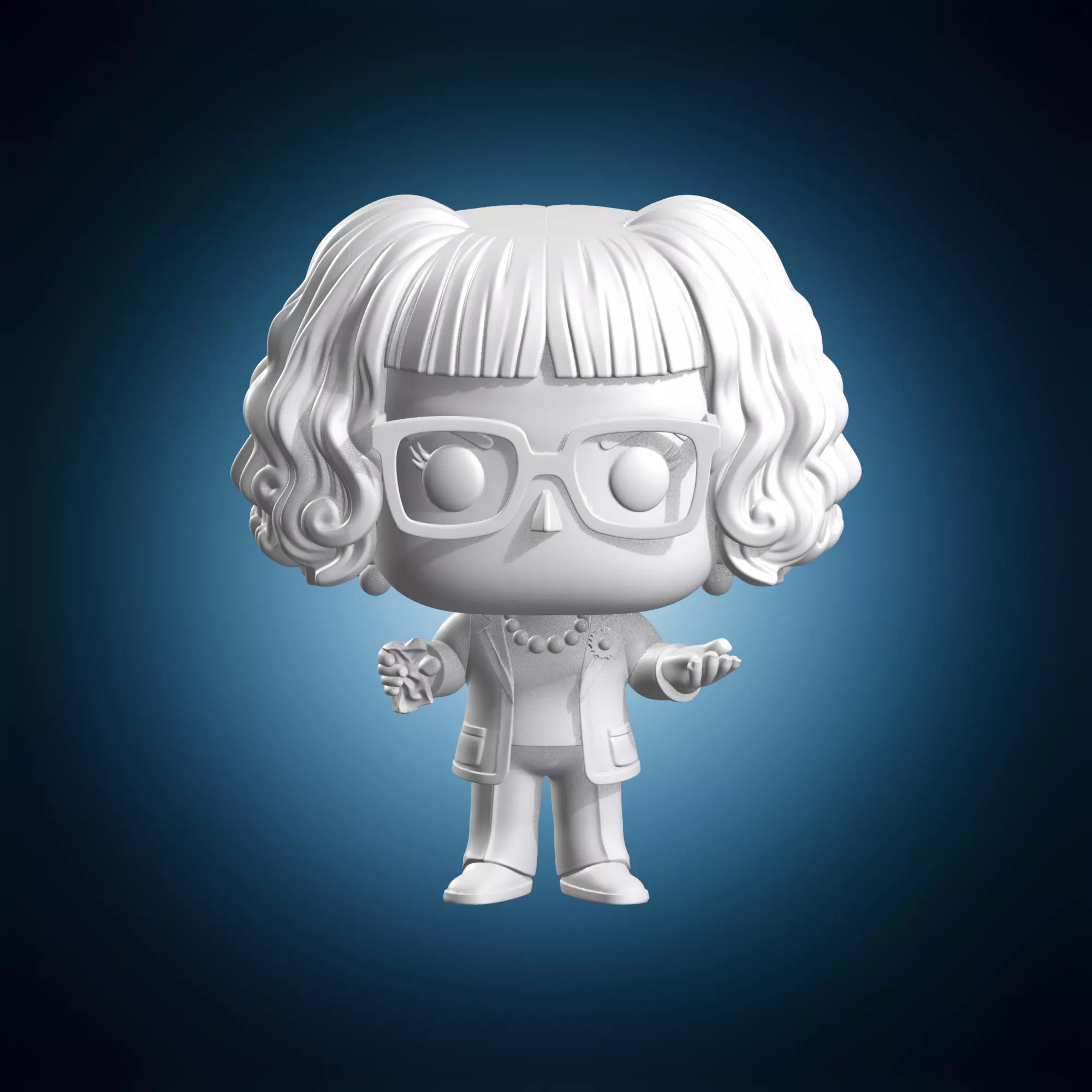 A highly detailed and realistic 3D model of Edna Mode from The Incredibles in a funko pop style figure. This model is designed to be highly accurate and visually stunning, making it perfect for use in film, television, or animation productions. The model is suitable for various applications, including game development, architectural visualization, and product design. It features intricate details such as facial expressions, clothing, and accessories, all rendered in a stylized funko pop style. The model is available in multiple formats, including OBJ and STL.