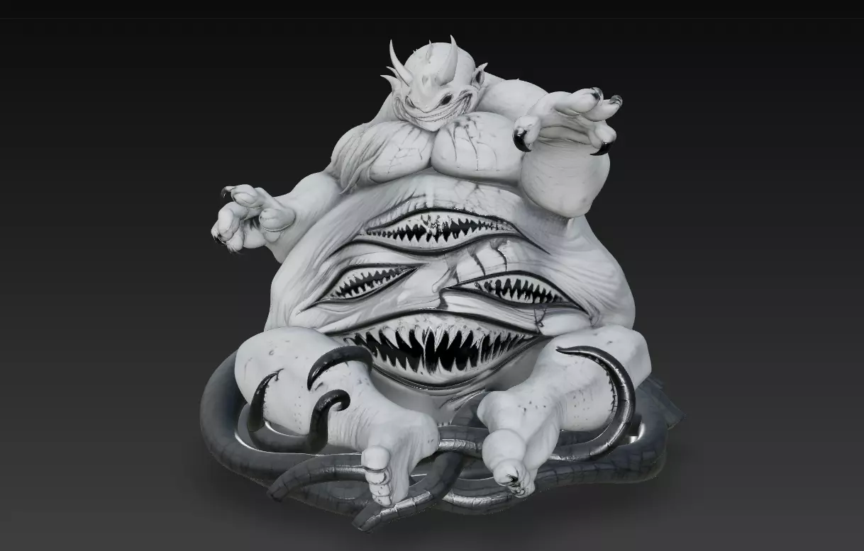 Each fold, tooth, and tendril is sculpted with detailed precision to emphasize the monster’s alien and chaotic nature.