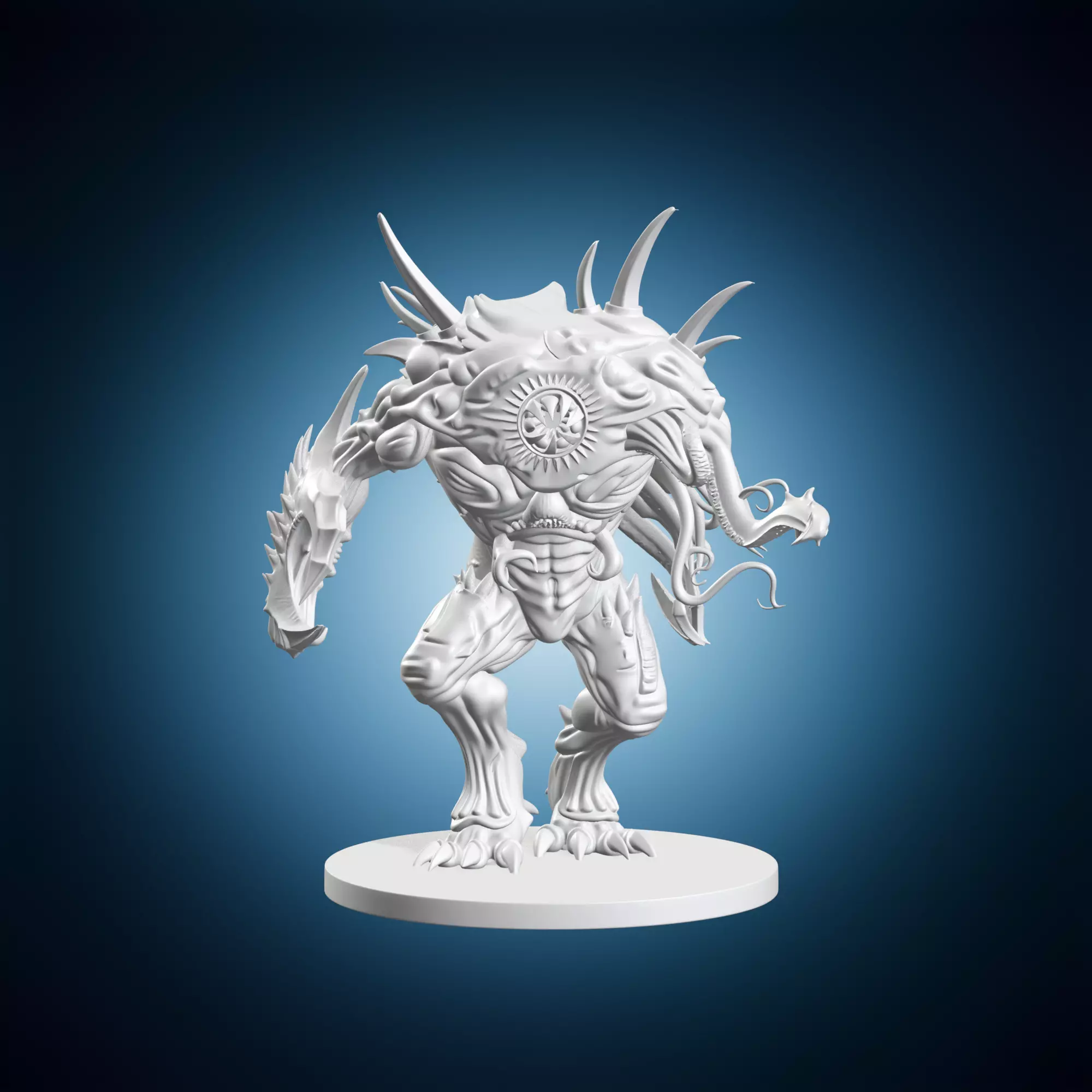 A detailed miniature model of an eldritch horror tentacle monster inspired by cosmic horror themes and mythology. The model features intricate details and textures to create a sense of realism and terror. It is suitable for tabletop games, dioramas, or as a decorative piece. Created using advanced 3D modeling software, this miniature model is designed to be highly detailed and visually stunning.