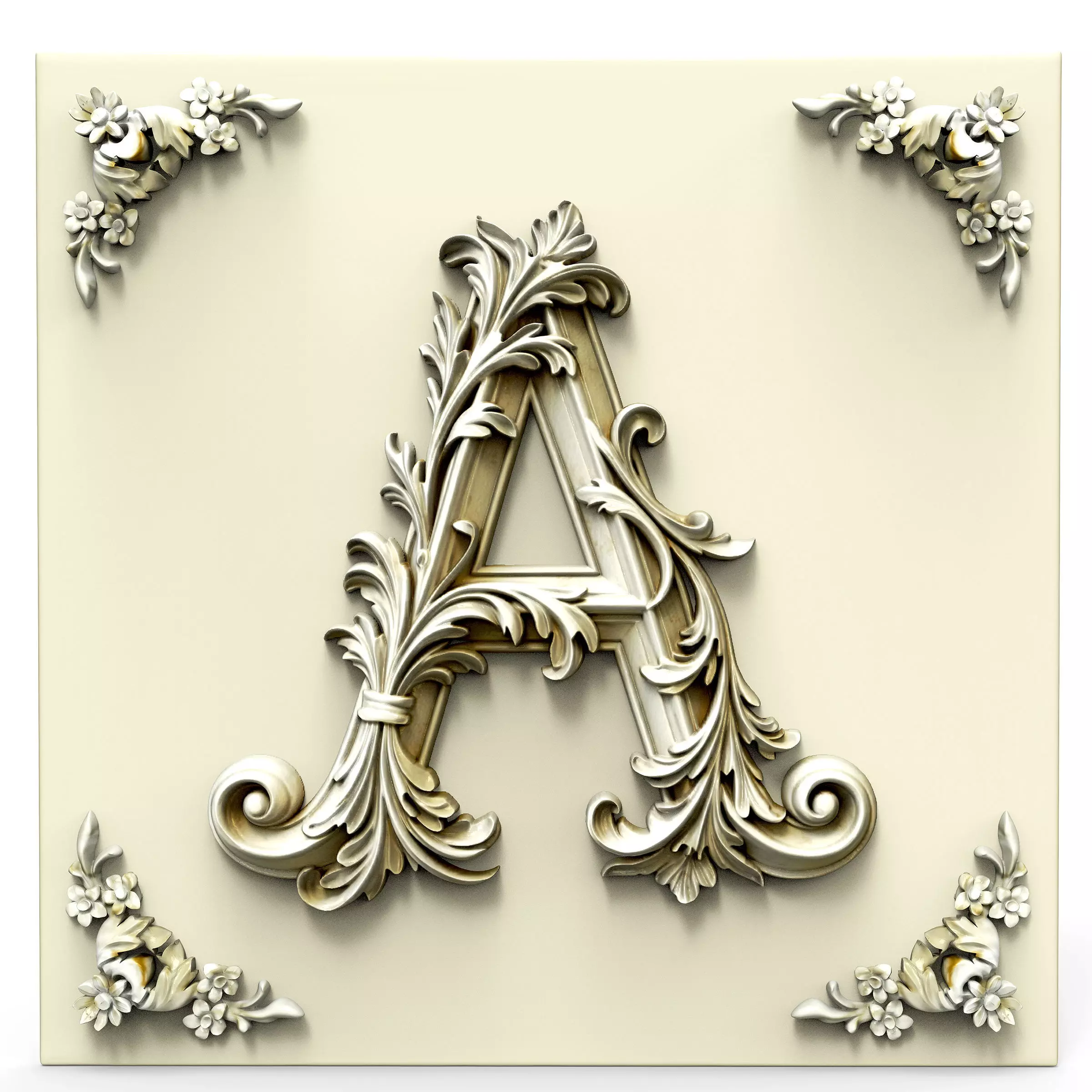 This is a highly detailed ornamental 3D model of the letter “A”, sculpted in a classical baroque style with floral decoration and smooth curved foliage.Perfect for CNC carving, wood engraving, wall art panels, resin printing, interior decoration, jewelry design, logos, and luxury branding.