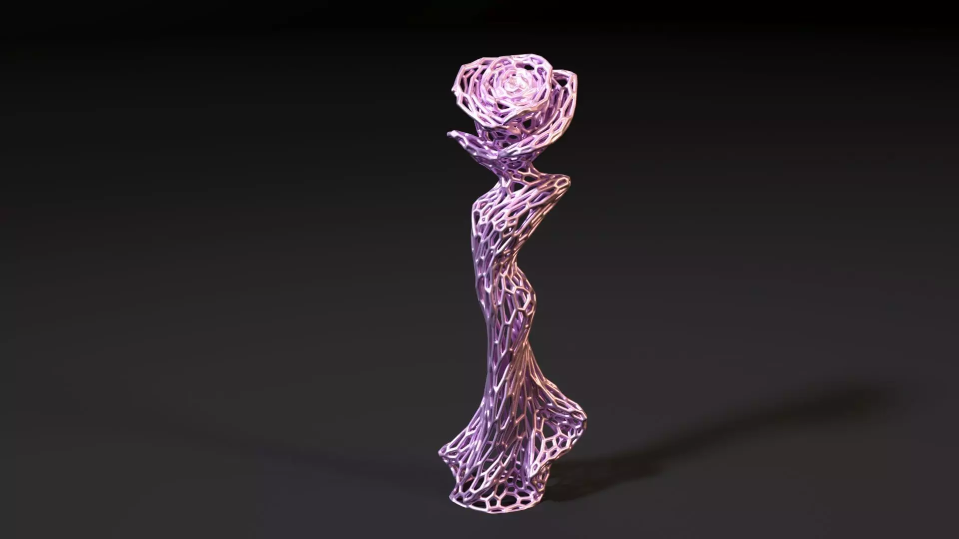 We present an elegant statuette — a stylized rose, made in a modern and original Voronoi style. This exquisite model combines smooth shapes and decorative geometric patterns, creating an effect of lightness and sophistication.