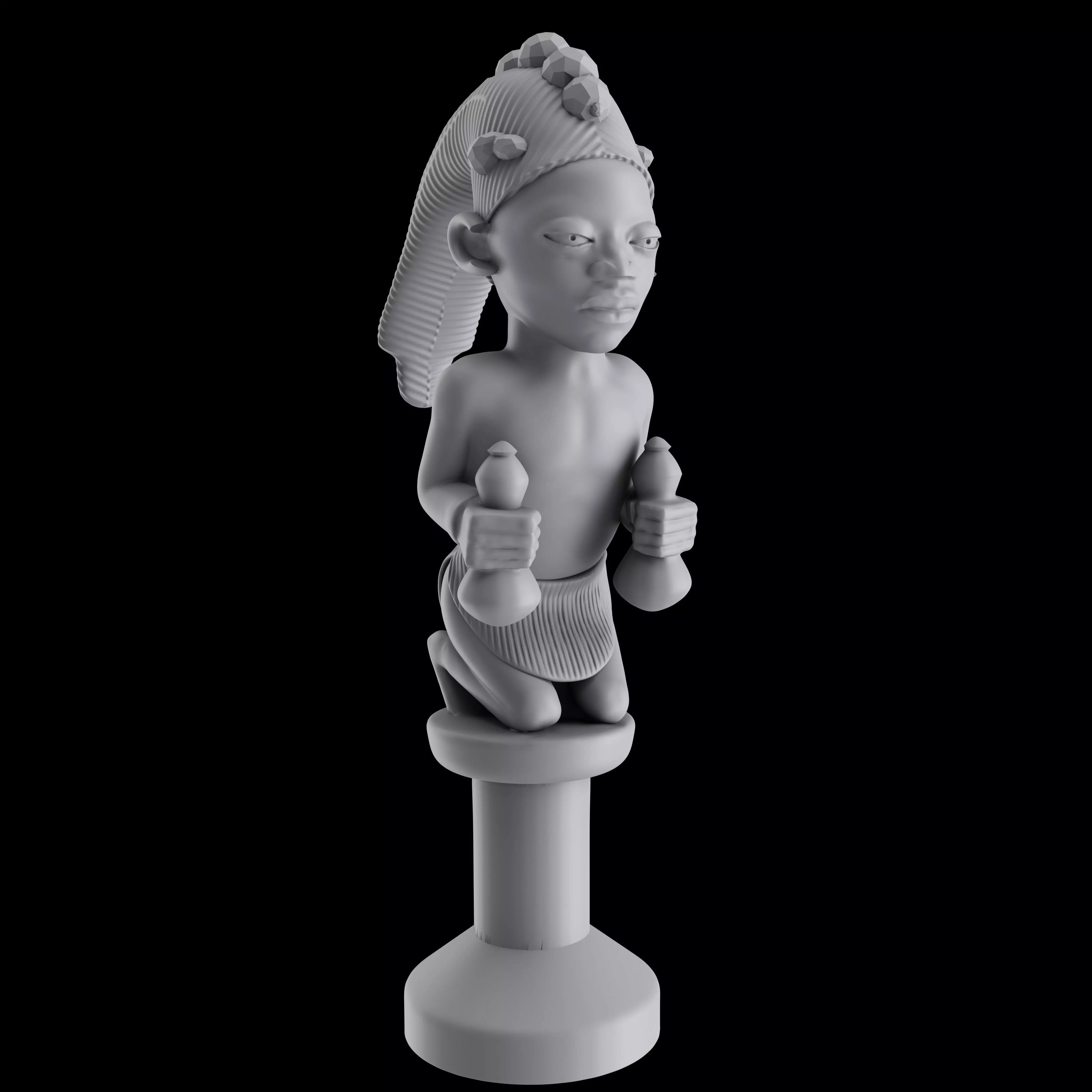 In the Yoruba religion, Elegua (or also known as Ligua, Liwaa, Legua) is the owner of the roads and destiny, he is the one who opens or closes the path of life, prosperity, happiness, luck or misfortune and can even determine about the influences of other egguns; He is very mischievous and his name means the messenger prince.That model is prepared to 3D print.The *.GCode included is for a Creality CR-10 printer,otherwise you have the *.OBJ to try to slice yourself.It comes in two complete model: one of 1,6 million poligons and another of 6,7 million poligons and the model in five pieces to assemble once printed,the size of the figure is 37,5 Cm. tall ,base included,but you can print without the base if you choose that.