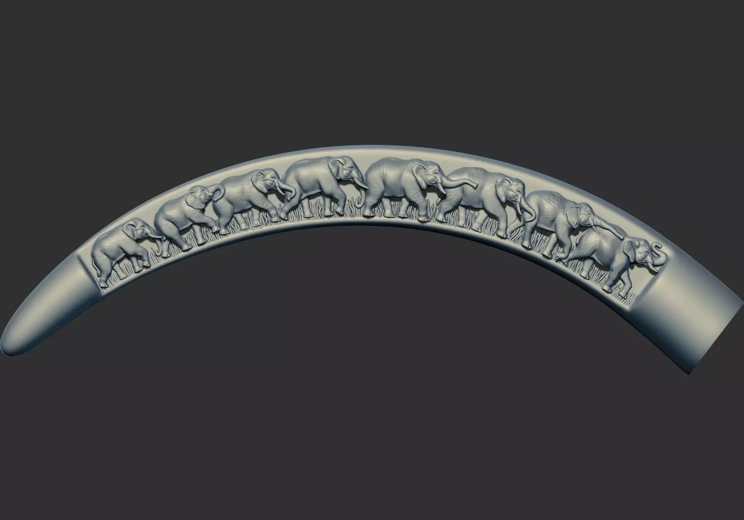 African style elephants scenes carved ivory tusk 3d printable model cnc