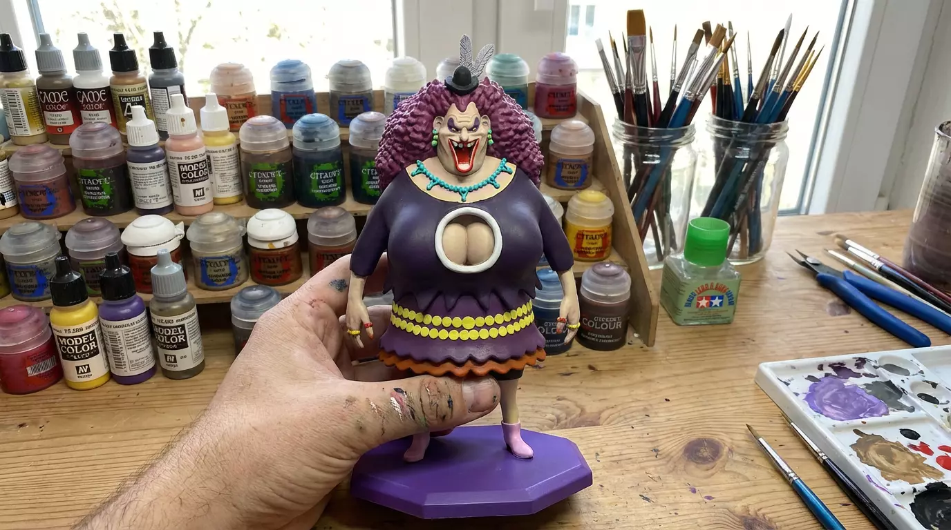Elmy[3] is an infamous New World pirate captain who allied with Whitebeard.Elmy is an elderly woman. She has a large mass of long, curly red hair with a small hat with two feathers on top of it. She wears large amounts of dark purple eyeliner around her eyes. She has pinkish-red lipstick around her mouth, which has several teeth missing. She wears an elaborate pearl necklace just below several folds in her neck. She also wears long bejeweled earrings and a ring on each finger of at least her right hand. She wears a purple blouse with a hole in the middle, a double pink skirt, the bottom of which is a paler color, fishnet stockings, and white boots. Over the skirt, she wears a yellow necklace made of very large beads.