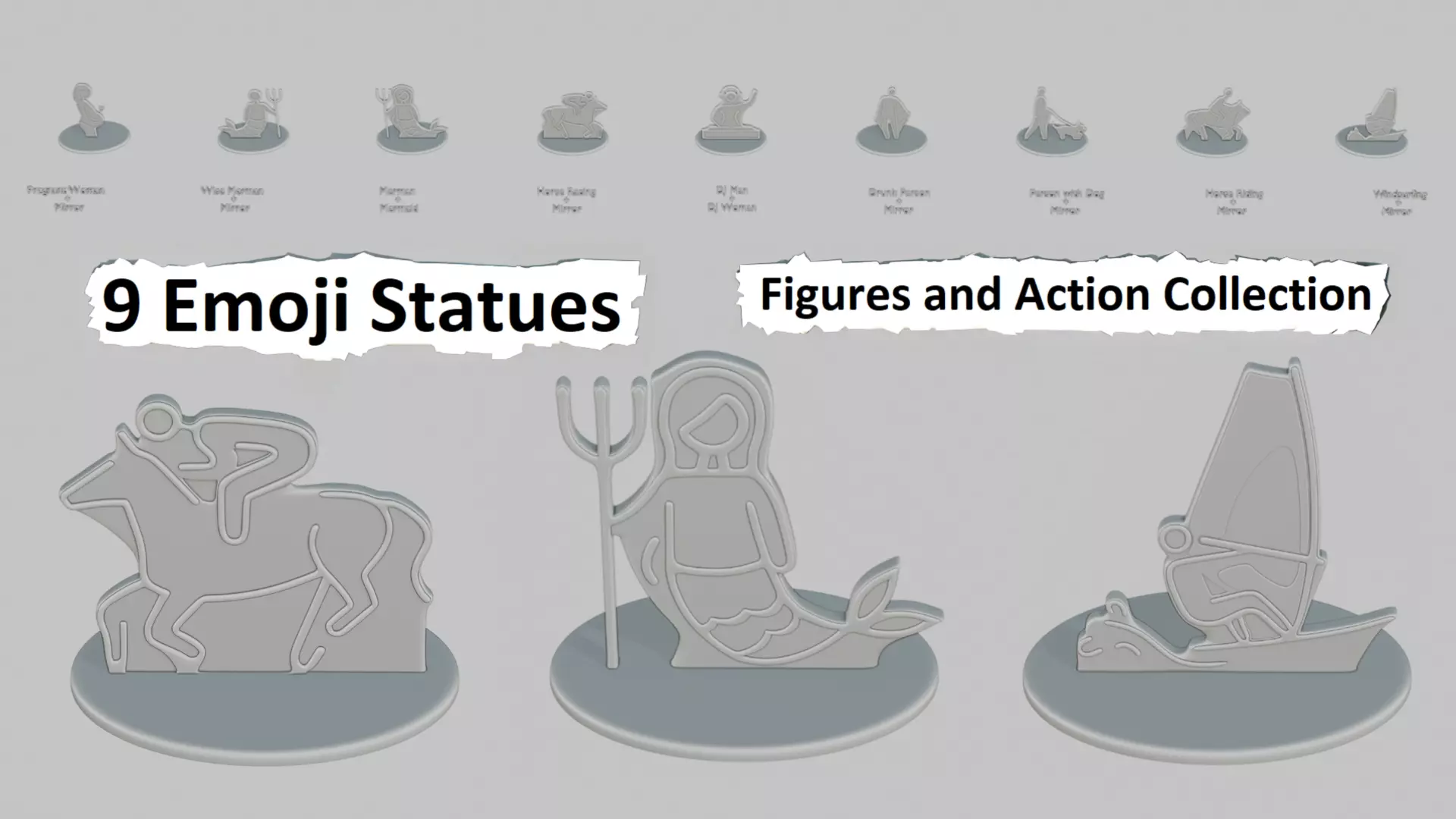 Description:This dynamic collection captures people (and half-people) in motion — from whimsical mermaids to daring riders and party-starting DJs. With mirrored poses and expressive silhouettes, these statues celebrate life’s wildest activities, hobbies, and a few mythical moments too. A perfect set for fans of movement, fantasy, and everyday action.