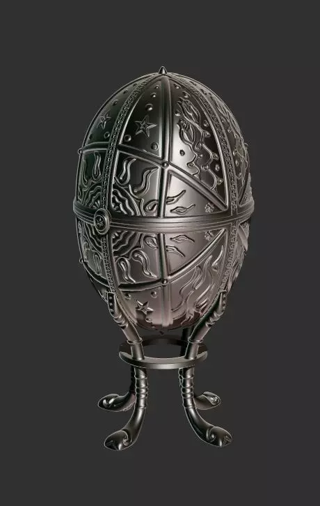 As Easter is coming up, this surprise egg is my take on a Faberge style egg.On the outside it is embossed with a sun eye, stars and tulips on the top half and flames on the lower section. It has a small moon gazing hare inside looking up at the moon that is in the starlit embossed lid. Its sits neatly in its stand and has a really nice feel to it when assembled. Real simple to paint as well to get a really tactile finish.Test printed on an Elegoo Saturn at 100% and the egg has a total height of roughly 110mmwithout the stand.Painted black and silver rub and buff and ivory on the inside with gold dry brush.then paint the moon and Hare with gold and stick them in.Finish off the stand with gold and black washEnjoy..