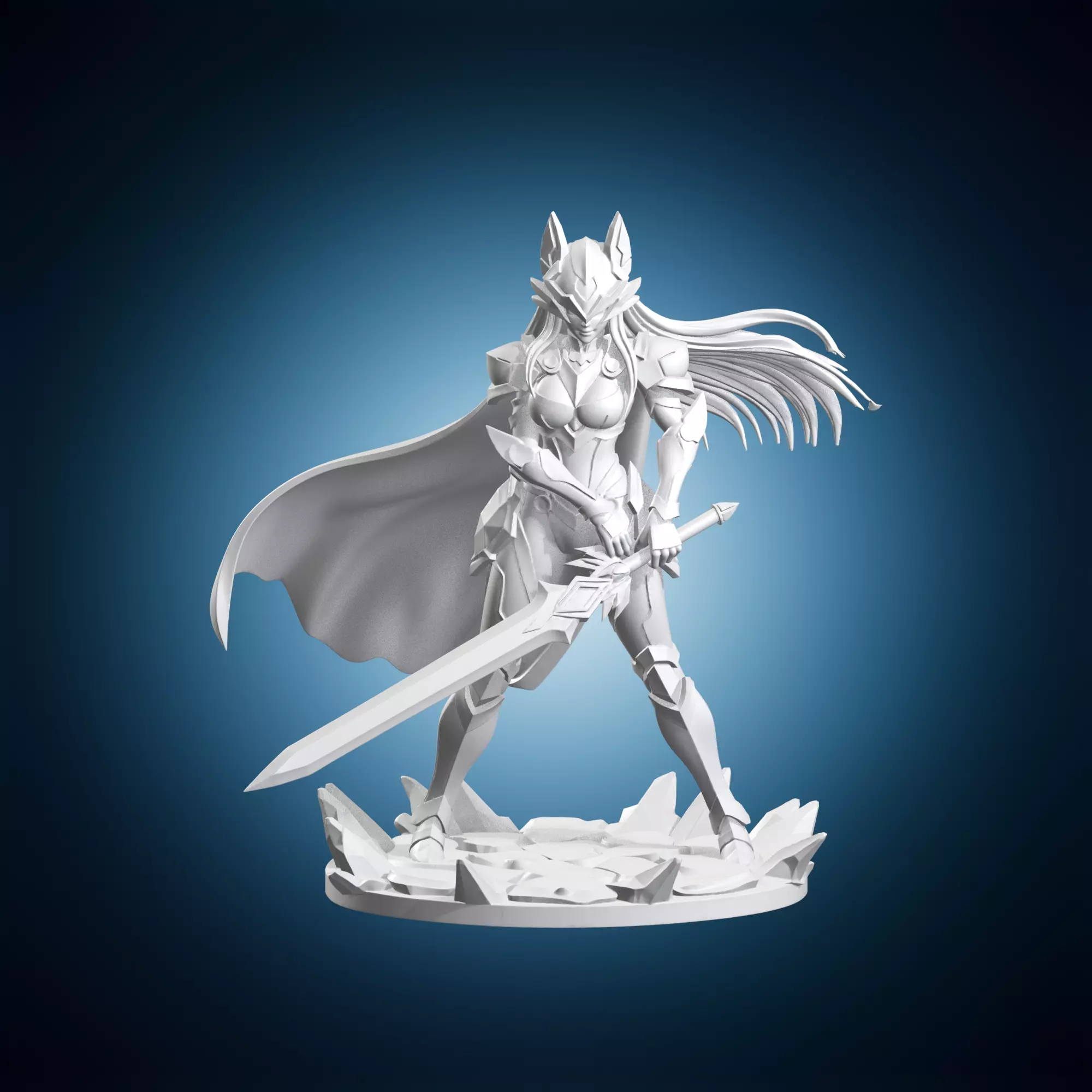 A highly detailed 3D model of Esil Radiru from the popular manhwa and anime series Solo Leveling, accurately recreated as a statue on a base. This realistic sculpture is perfect for fans of the show or collectors looking to add a unique piece to their collection. The model features intricate details and textures, making it suitable for use in various projects such as animation, video games, or print-on-demand products.