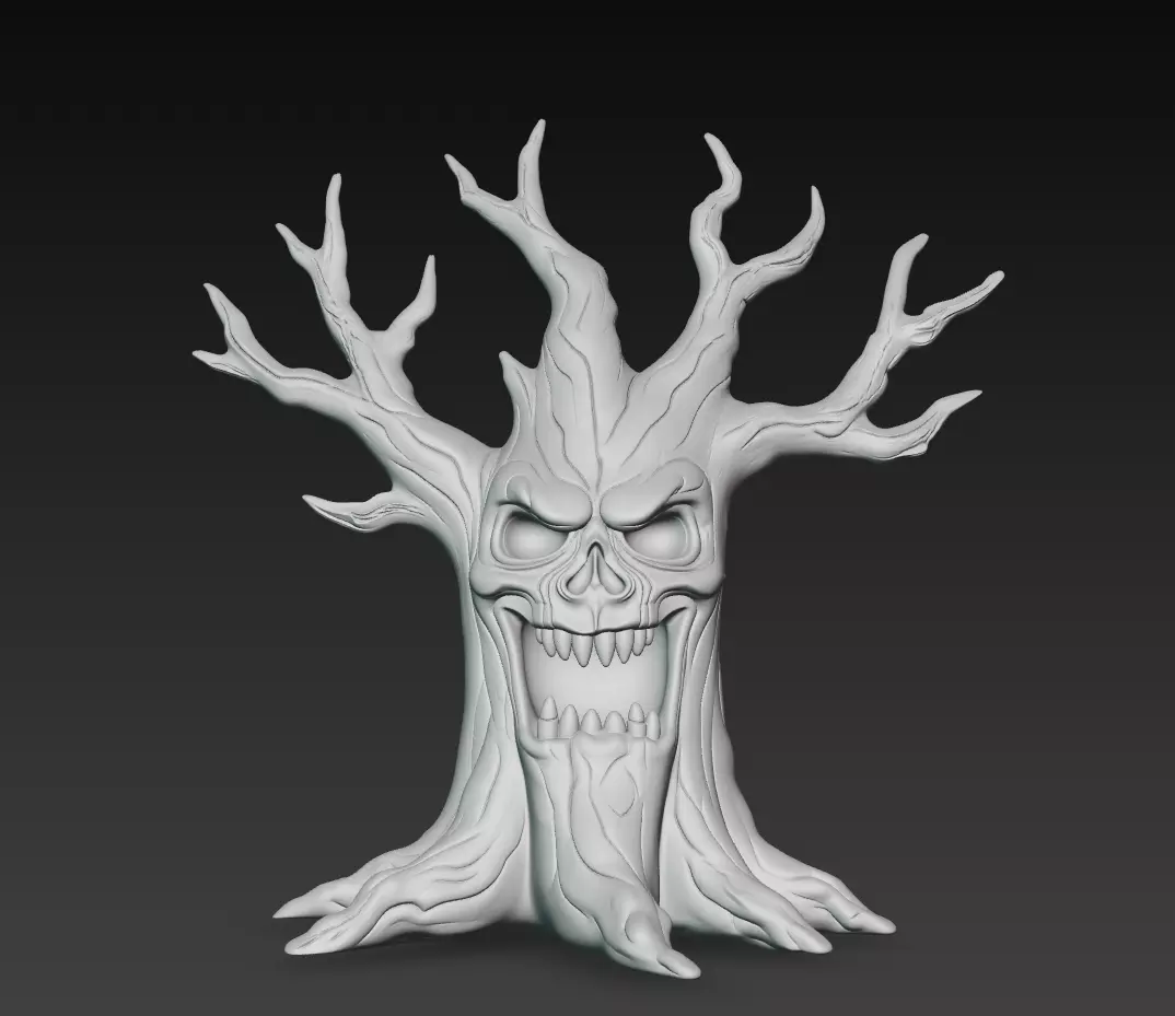 Created as a high-resolution ZBrush-style sculpt, this model captures every detail of cracked bark, sharp roots, and organic distortions. It works perfectly as a Halloween decoration, fantasy environment prop, or standalone display piece.