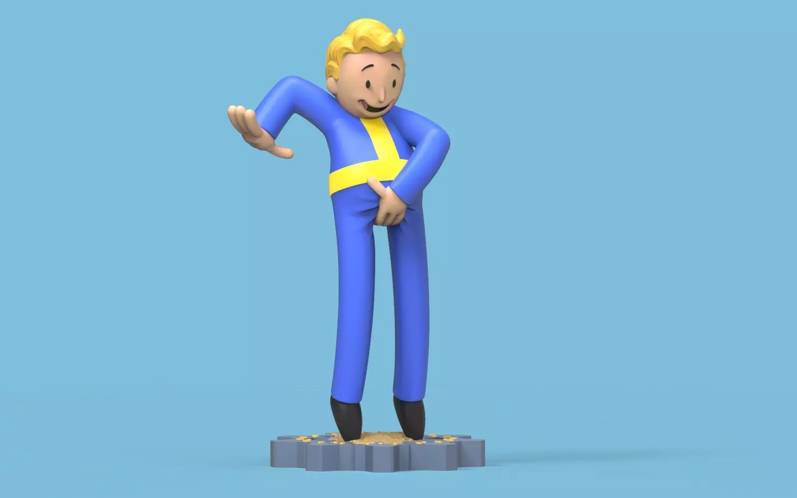modelo 3D del vault boy del juego fallout 4 version meme