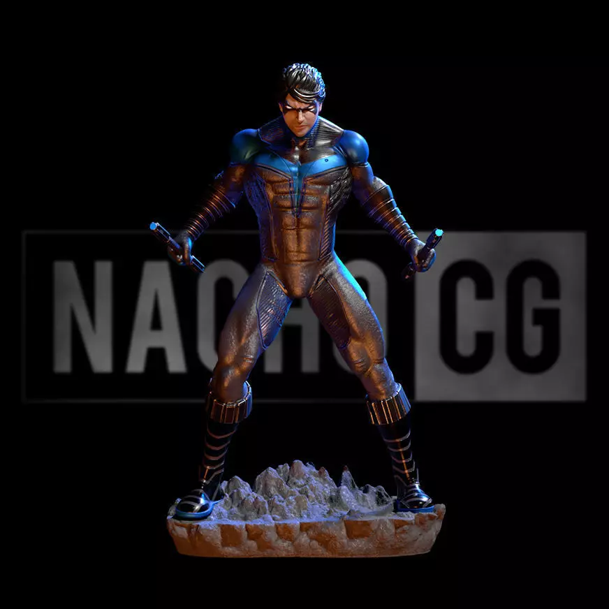 ESPAÑOL:¡Hola! ¡Este es mi Fan Art de Nightwing! . La escultura digital (STL con marca de agua) está lista para imprimir.El modelo esta Cortado y con encastres perfectos para que sea más fácil de imprimir y pintar.¡También incluye un archivo de cuerpo completo y otro de una sola pieza (personaje + base)! -La base viene en una sola pieza. Este modelo tiene una escala de 1:8 y mide 7,8 pulgadas (20 cm) de altura.