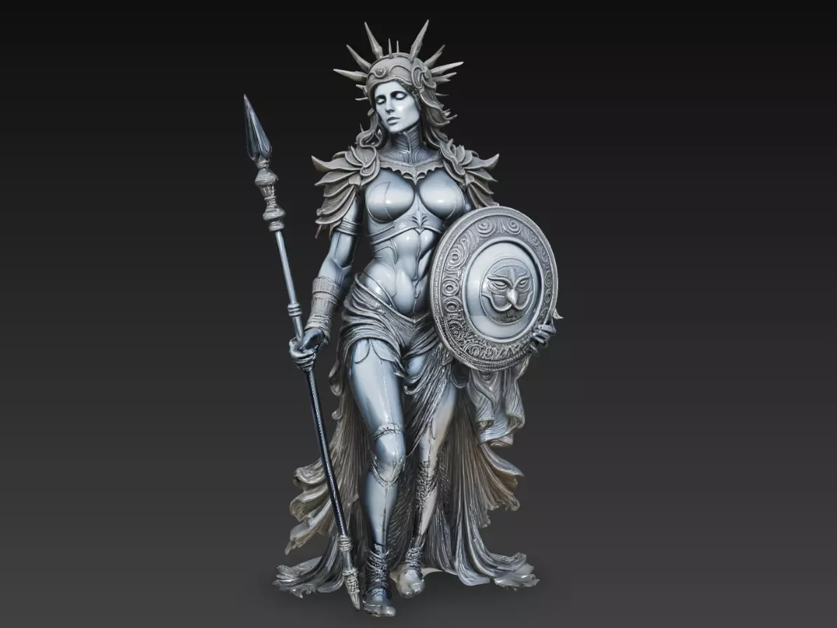 Fantasy Warrior Goddess Spear Shield Female Statue is a premium high-detail 3D model designed for mythological collections, fantasy displays, and high-quality 3D print projects. Featuring a powerful female warrior holding a spear and ornate shield, this model combines strength, elegance, and divine presence.