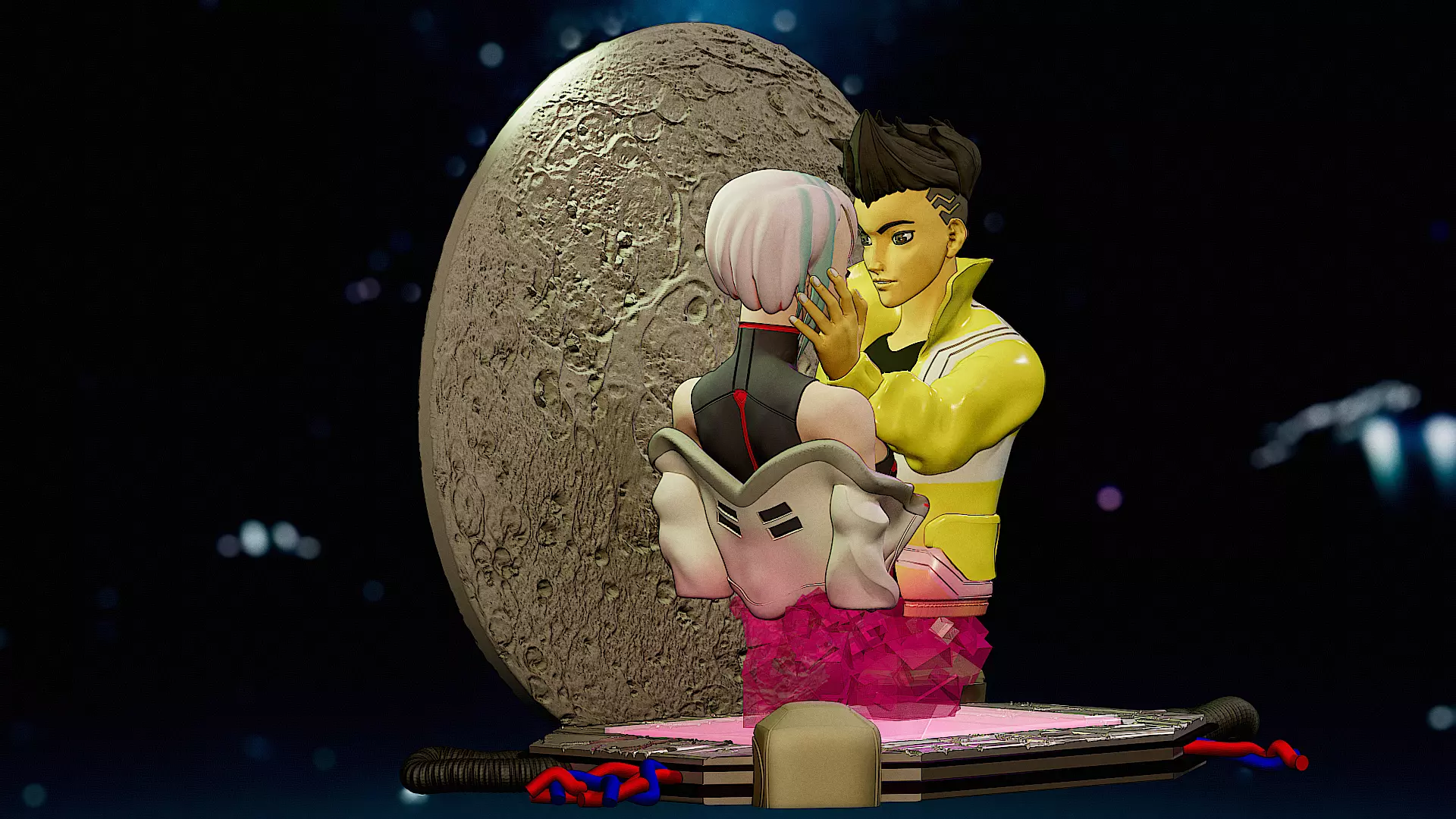 Découvrez le fichier STL figurine cyberpunk edgerunners : Lucy et David devant la lune
