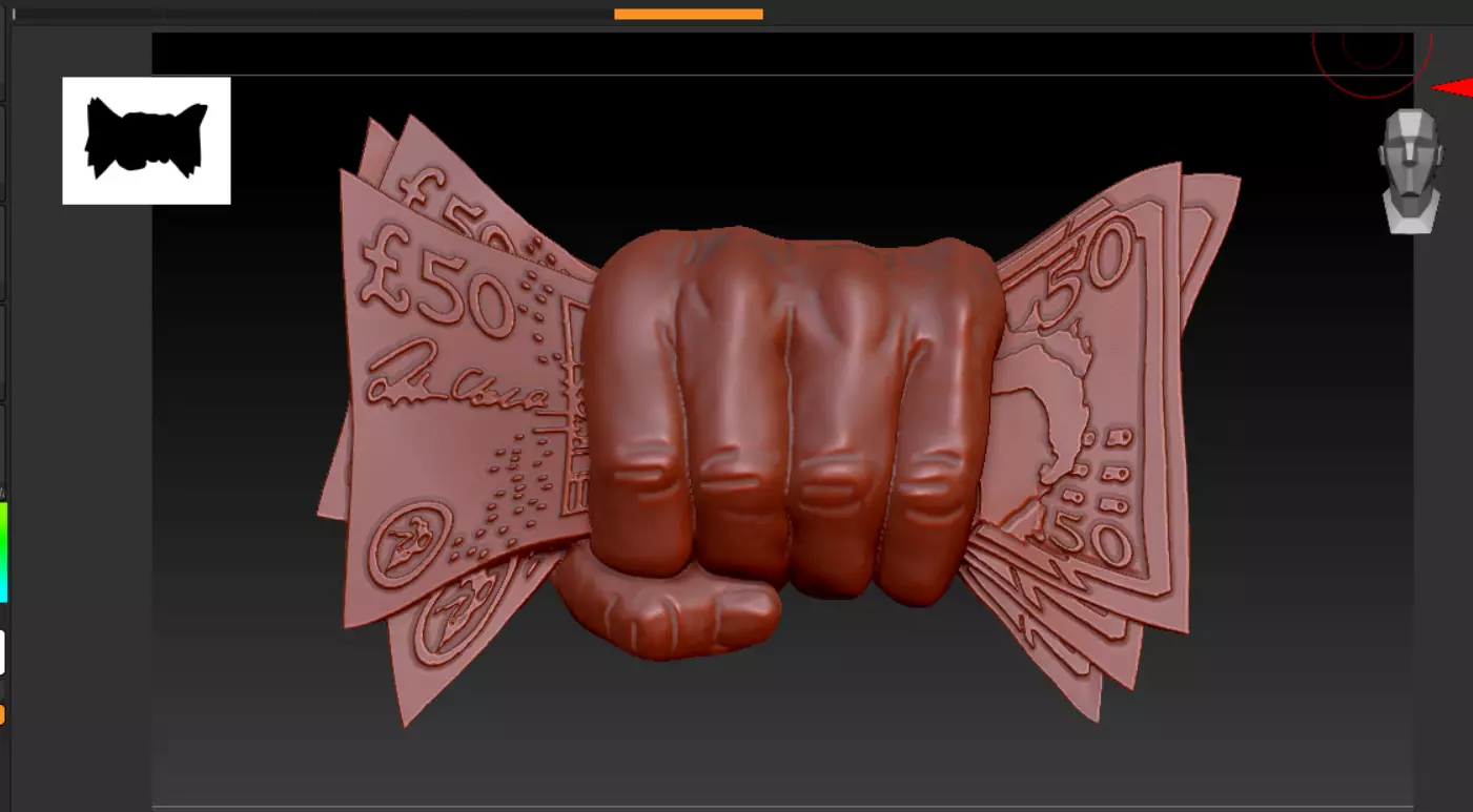 This 3D model features a powerful and dynamic design of a clenched fist firmly gripping a stack of detailed currency notes. The sculpted hand captures strength, determination, and control, while the money elements symbolize wealth, ambition, and success. With fine surface details and bold visual impact, this model is ideal for use in jewelry design, art projects, collectible items, wall plaques, or symbolic decorative pieces. The money in the 3D sculpt is modeled after British currency – specifically the £50 banknote (fifty-pound note).