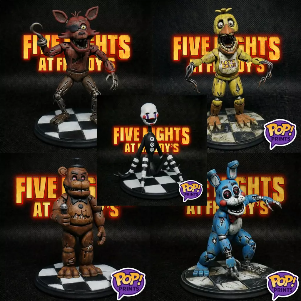 Perfect for collectors, horror fans, and 3D printing enthusiasts, this pack delivers a full animatronic lineup ready for display and painting.