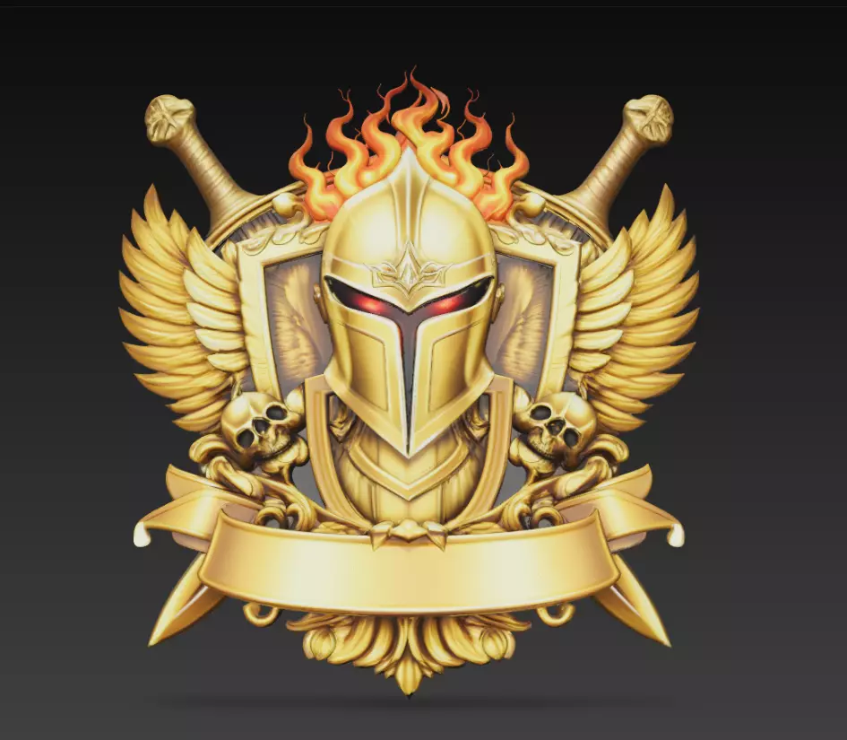 Flaming Knight Helm Winged Shield is a powerful fantasy wall relief 3D model featuring a legendary knight helmet surrounded by blazing flames, crossed swords, skull details, and majestic golden wings. The composition represents courage, dominance, battle honor, and mythical authority, making it ideal for epic fantasy decor and heraldic collections.