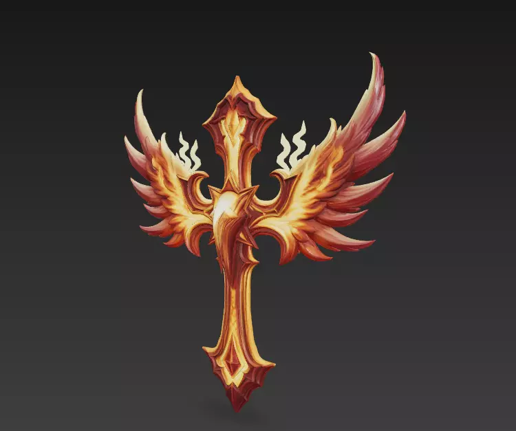 This Flaming Winged Cross features a dramatic design with fiery wings and a glowing central cross, symbolizing divine strength and spiritual energy. Perfect for CGI, digital scenes, or 3D printing as a decorative ornament or fantasy prop.