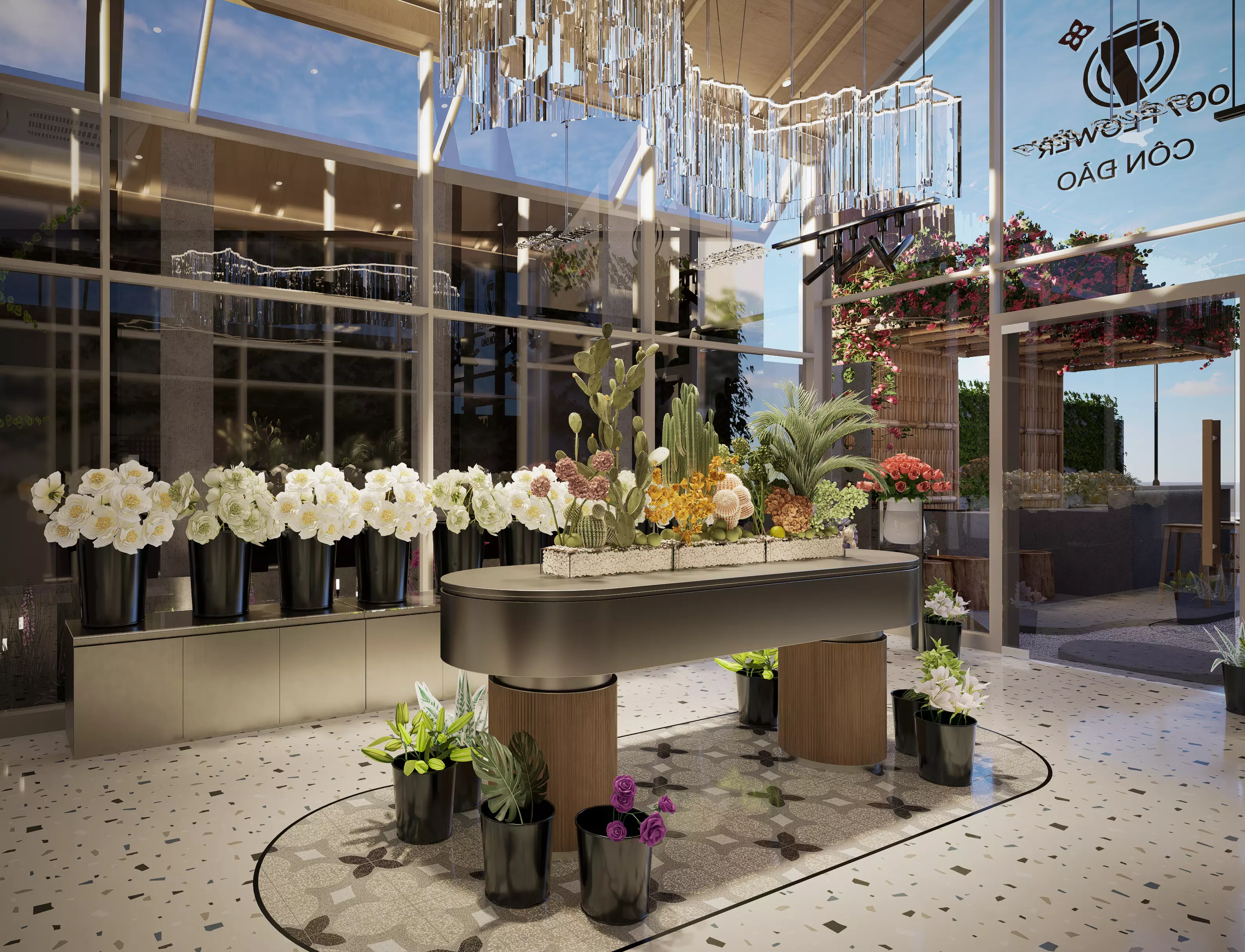 The “007 Flower – Côn Đảo” project is designed to capture the harmony of nature, light, and modern minimalism. Featuring an organic & tropical style, the space combines a cozy outdoor seating area with natural wooden furniture and lush greenery, alongside a modern bar and flower display under a minimalist wooden roof. With carefully crafted lighting, green walls, and natural pathways, the project creates a unique flower-and-café experience where visitors can enjoy nature and architecture in perfect balance.#Architecture #InteriorDesign #LandscapeDesign #CafeDesign #TropicalStyle #Minimalism #OrganicDesign #LightingDesign #FlowerCafe #VietnamArchitecture #ConDao