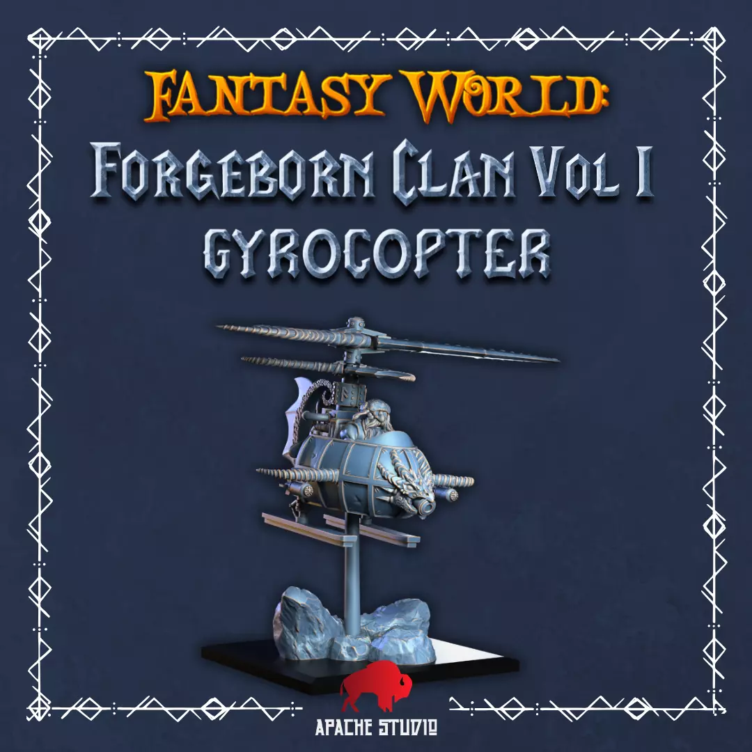 Gyrocopters are one of the most extravagant and prized inventions of dwarven engineers. Capable of soaring through the air with their rotor blades, which are powered by a steam engine, these devices are perfect for quickly negotiating barely passable mountain passes and transporting intelligence between dwarven cities, detecting threats early, and even attacking enemy lines to slow their advance.