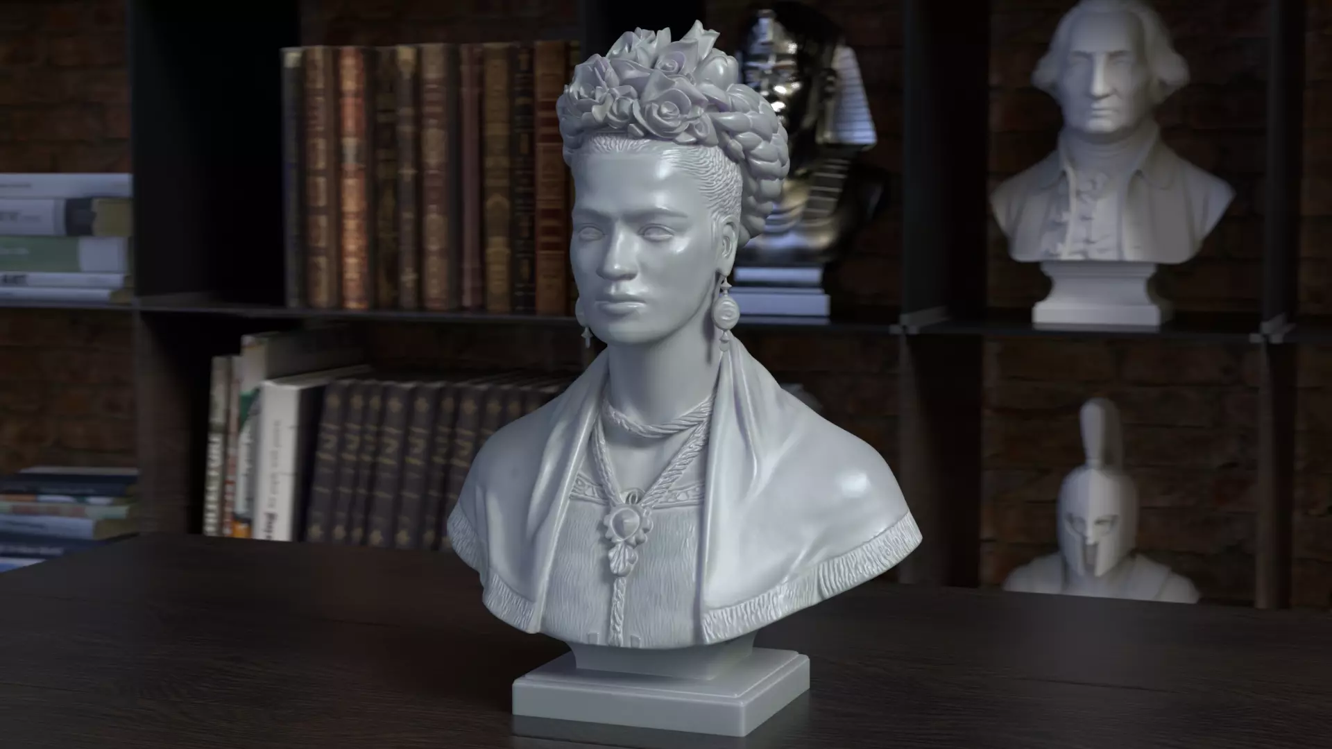 This captivating bust portrays Frida Kahlo, the iconic Mexican painter renowned for her powerful self-portraits and unique artistic vision. Sculpted with a strong expression and adorned with her signature floral headdress and braided hairstyle, the bust pays homage to her vibrant personality and enduring legacy in the world of art. It's ideal for collectors, artists, and admirers of cultural icons who wish to honor her extraordinary life and creativity.