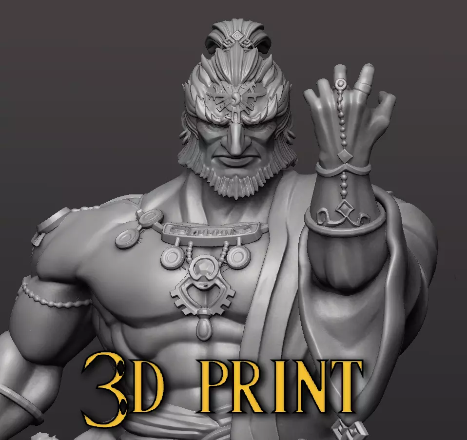 Disclaimer: the 3D print showcased in these pictures was printed with an Elegoo Mars 2 Pro and Grey Water Washable resin. Keep in mind your recommended printer/resin/curation settings to get the best results possible. In case you need to adjust each joint for the segmented print, you can edit it in Zbrush (or any 3D app you feel comfortable).This sculpt was made from scratch back in May 2023 when the official artwork for Ganondorf was released, so it's essentialy a fan art, even though I tried to stay as faithful as possible to the original design, I may have taken some changes or artistic licenses, all in all, hope you like it!