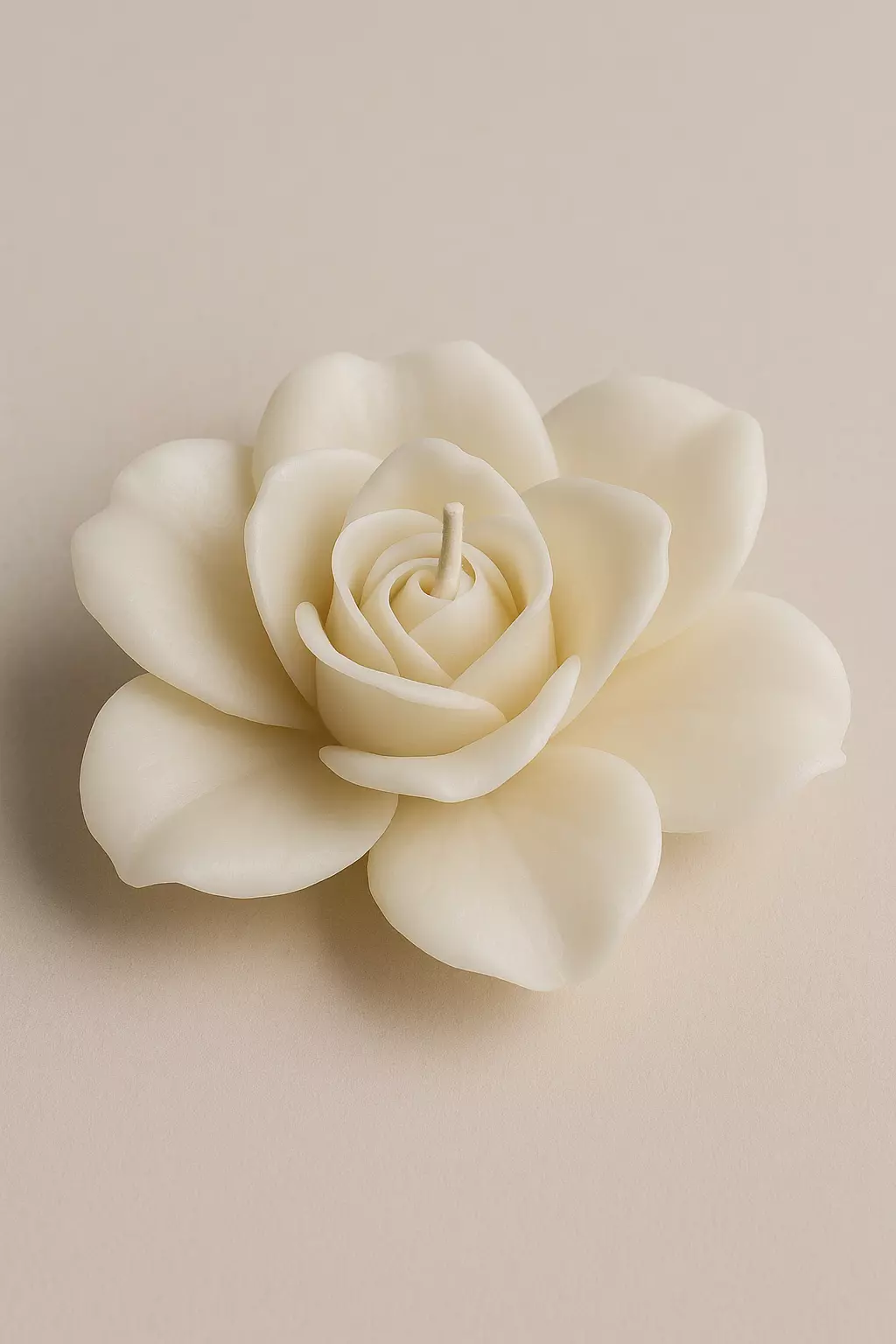The model features a stylized gardenia with multiple layers of curved petals unfolding harmoniously from a closed central core. The geometry is smooth, fluid, and organic, designed to capture the essence of a natural flower with a clean, minimalist finish that facilitates post-processing.
