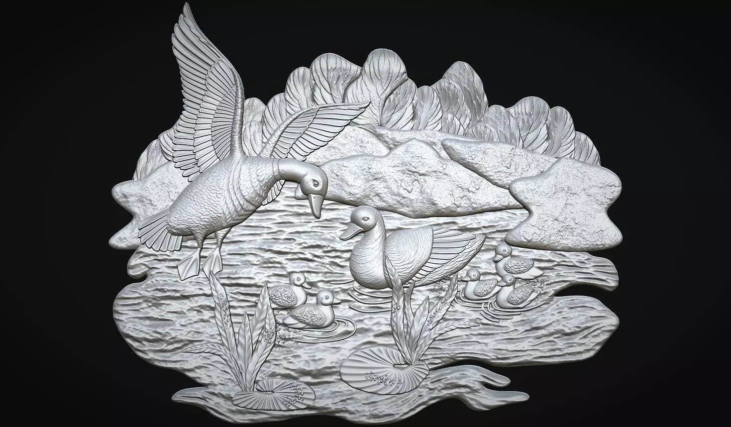 Geese on lake bas relief 3D print model