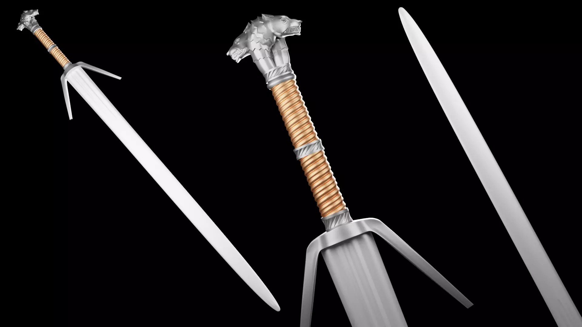 -Geralt Silver Sword was originally modeled with two versions with 105cm. But you can resize it at will, or send me a resize request.