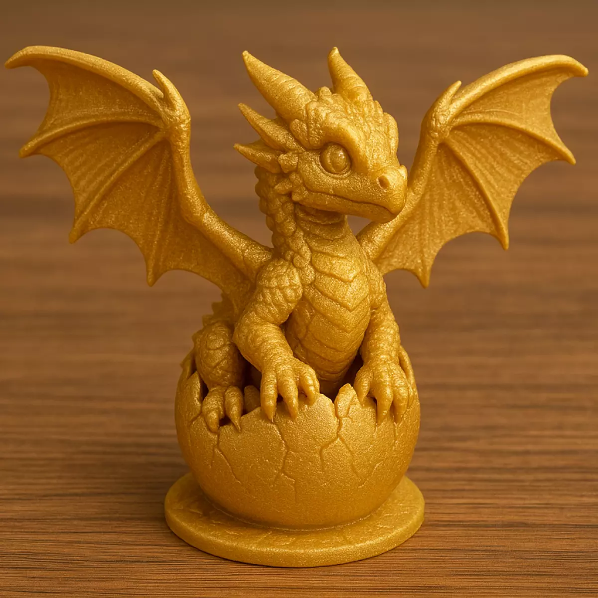 Unleash a touch of magic with the Golden Dragon Egg Hatchling, a beautifully detailed 3D model perfect for bookshelf or desk display. This little dragon, just breaking free from its shimmering egg, symbolizes new beginnings, mystery, and fantasy wonder.