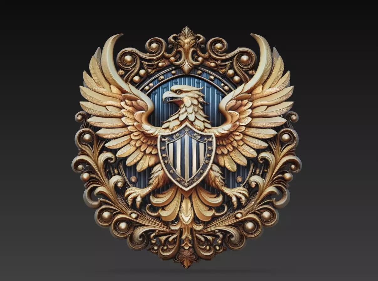 This Golden Eagle Crest 3D Model features a highly detailed heraldic emblem inspired by classical and royal symbolism.