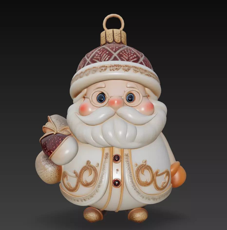 Every feature — from the textured hat and delicate engravings on his coat to the soft golden tones — is crafted with care to evoke a luxurious Christmas spirit. Perfect for CGI decoration, 3D printing, or premium festive design projects.