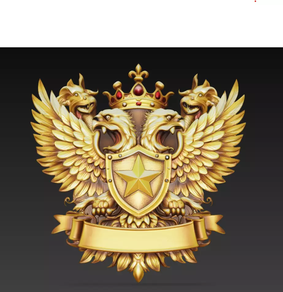 The ornate shield with a central star emblem reinforces themes of leadership and honor, while the decorative banner and crown complete a classic heraldic composition. This sculpt is ideal for fantasy crests, royal insignias, medieval emblems, wall reliefs, collectible sculptures, and high-quality CGI renders.