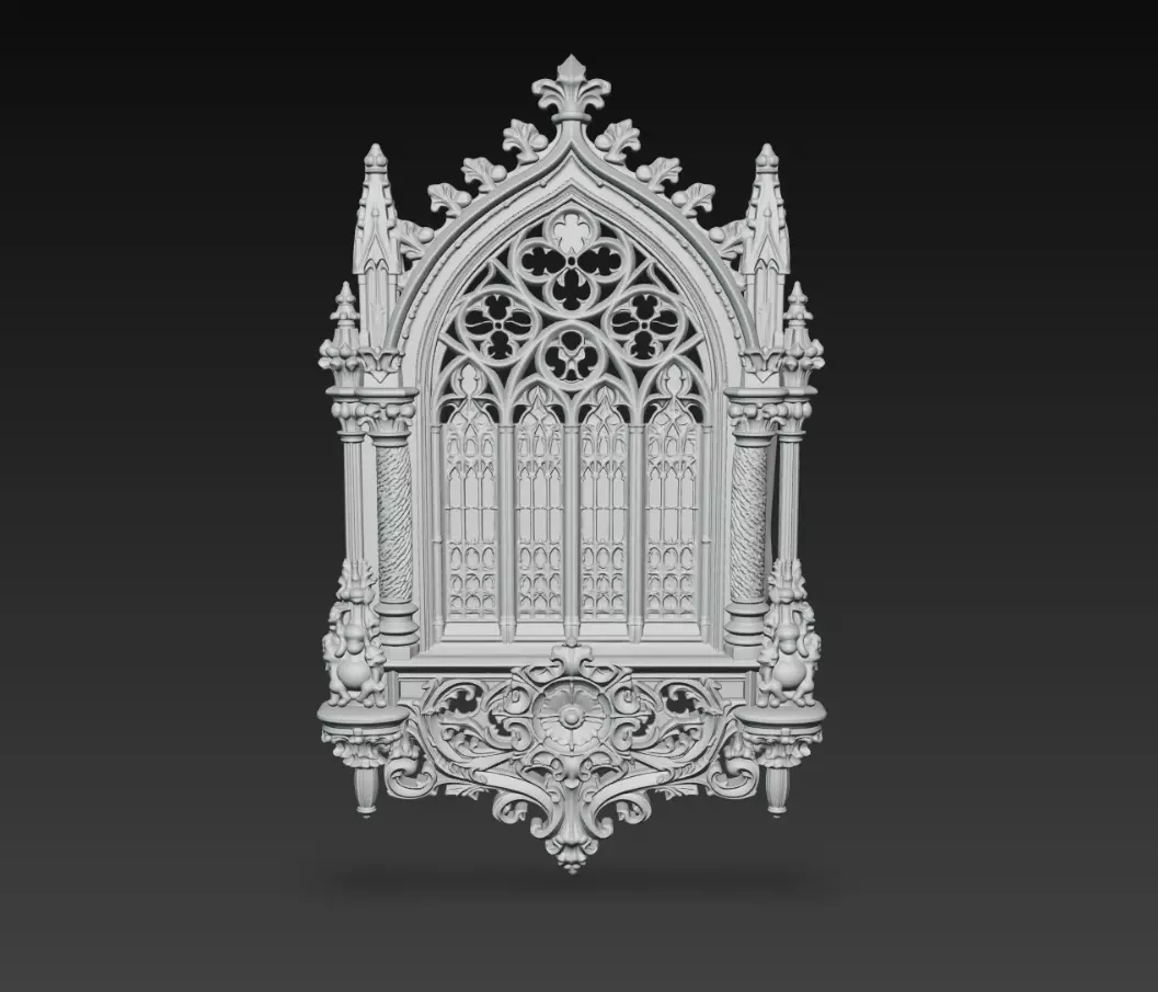 This Gothic Cathedral Window 3D Model features an intricately detailed architectural composition inspired by classical European gothic design.