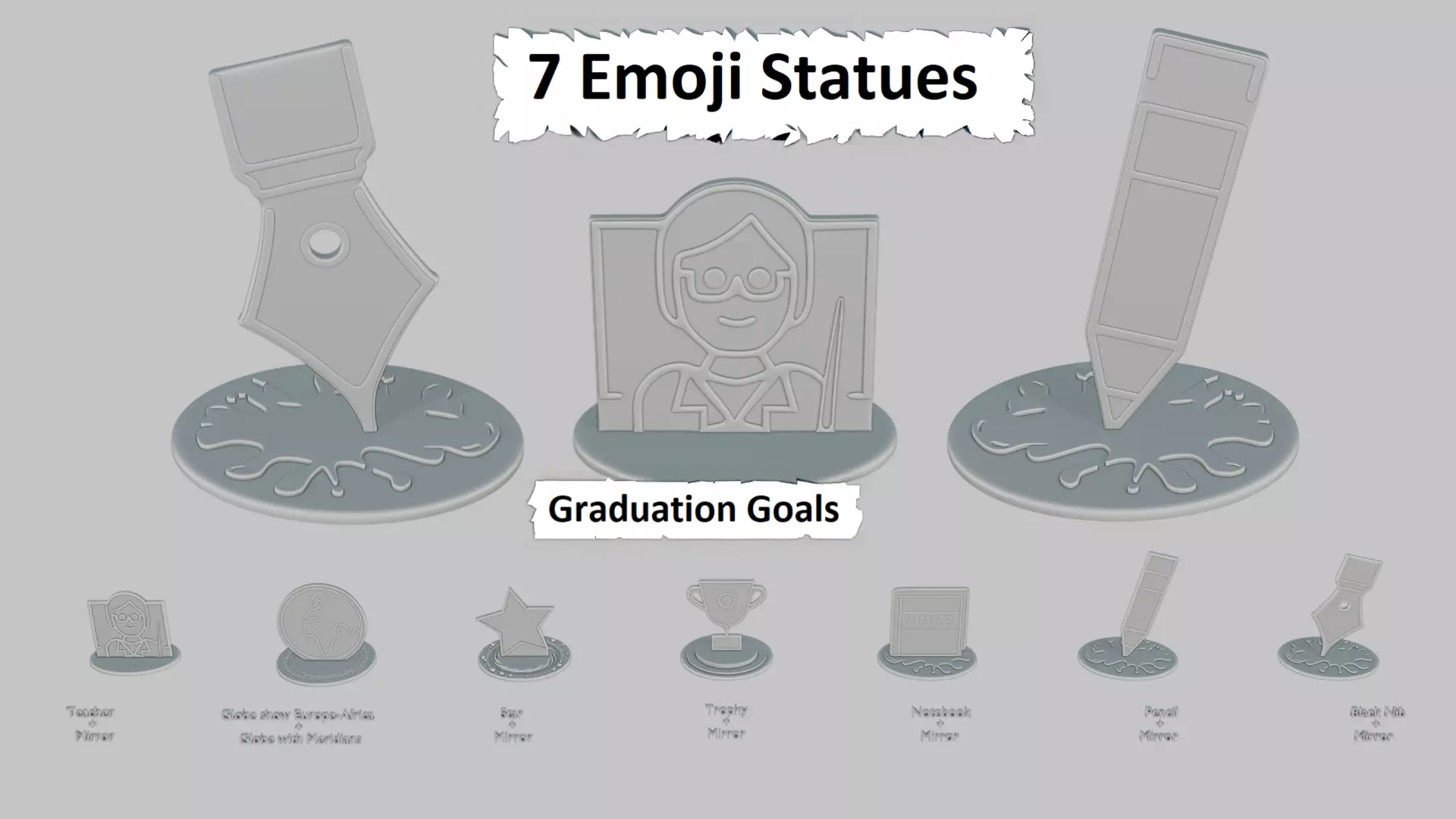 DescriptionA compact tribute to achievement, this mini pack honors teachers, notebooks, trophies, and stars—just the essentials to ace your 3D print shelf.