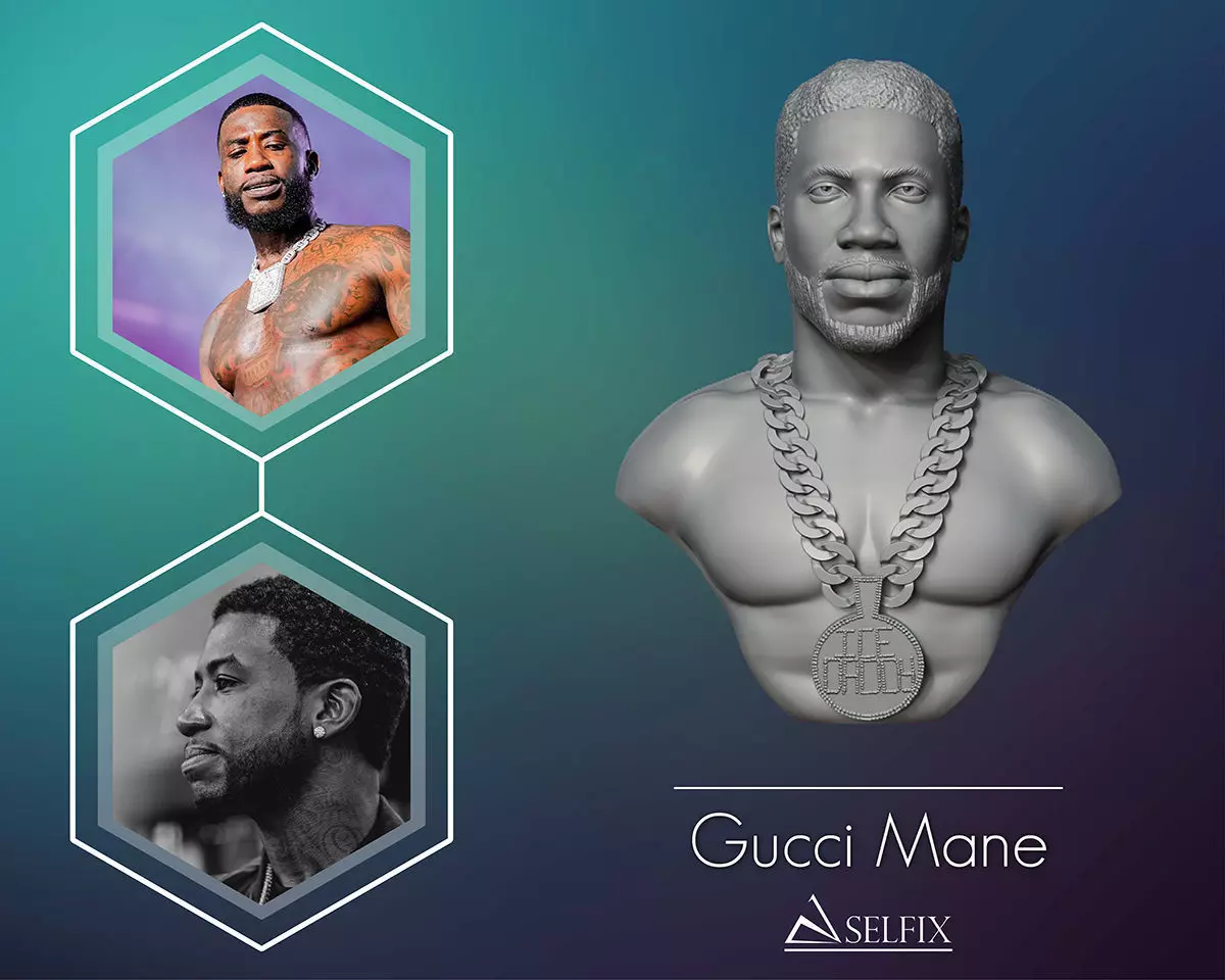 Gucci Mane 3D portrait sculpture is ready to 3D print. American rapper Bust for 3D printing.