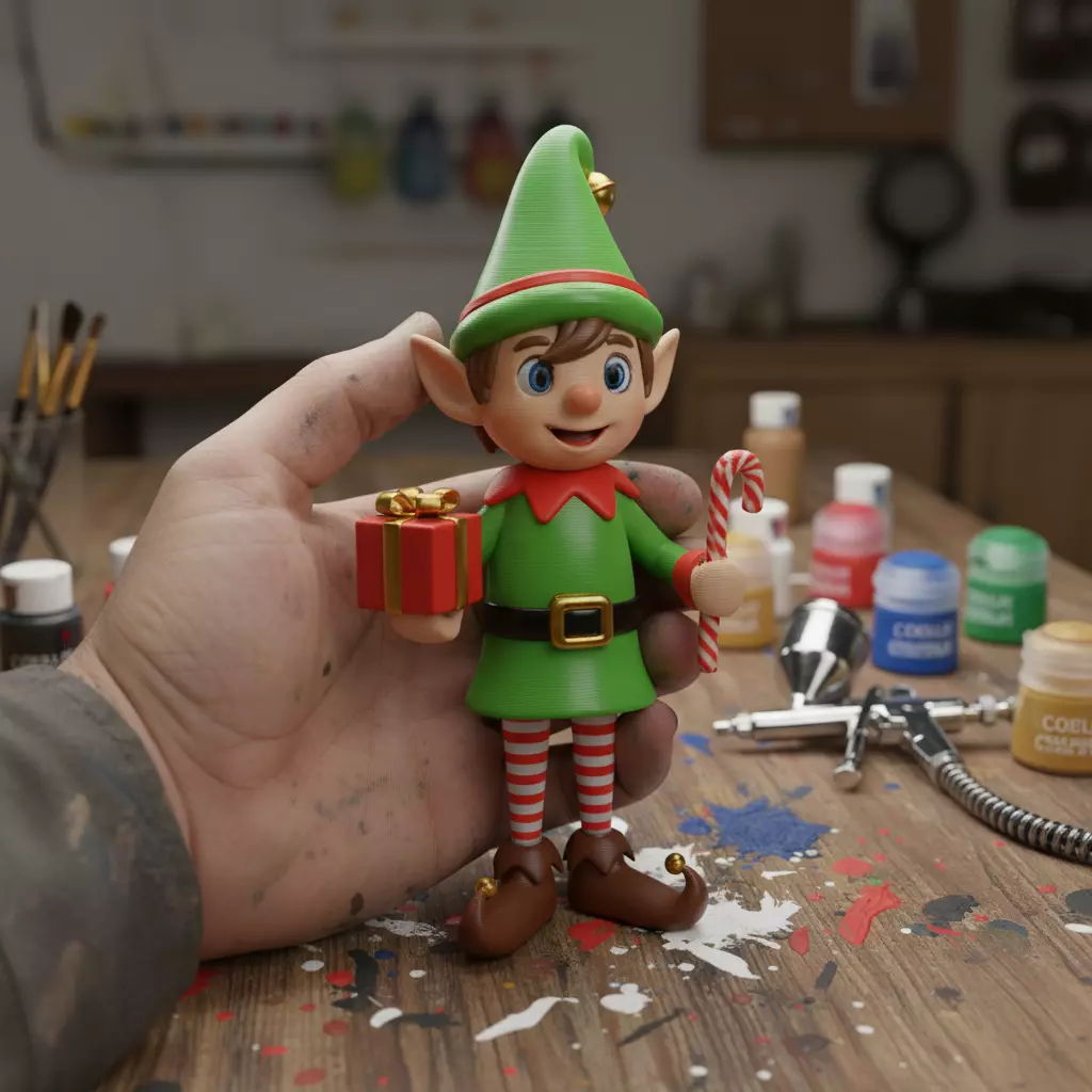 • Painting Tip: Bring this elf to life with bright acrylics! Use a vibrant green for the hat and tunic, and don't forget the classic red-and-white stripes for the candy cane and leggings. A touch of gold on the belt buckle and hat bell adds a nice festive finish.