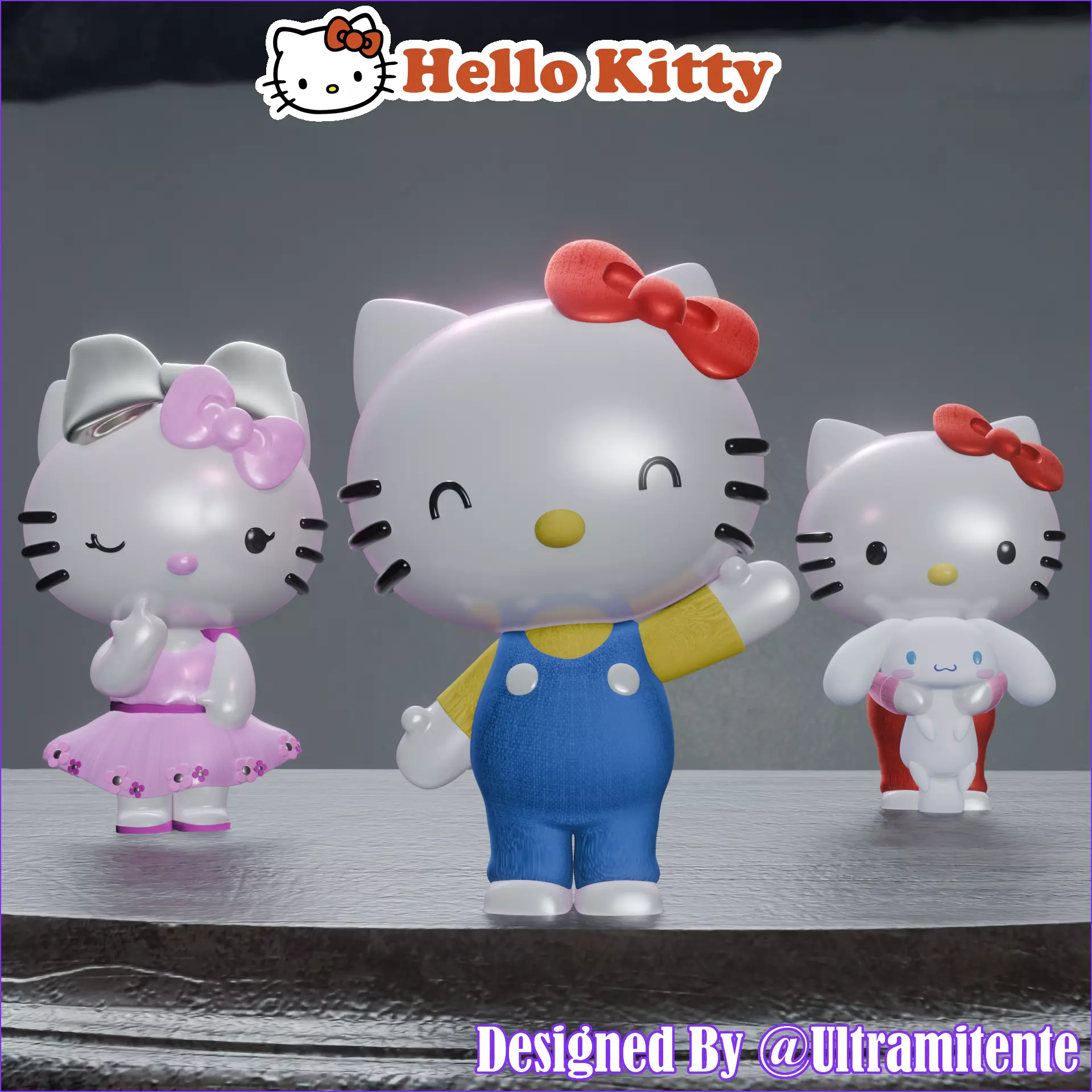 Asombroso Pack de tres diseños de Hello Kitty totalmente escalables en formato STL.Este Pack contiene:
