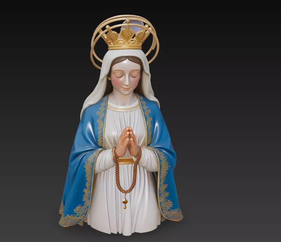 A serene and beautifully crafted Holy Queen of Peace – Praying Marian Sculpture, designed with calm expression, elegant robes, and a detailed rosary. This high-quality statue is ideal for 3D printing, CNC carving, resin art, church decoration, and religious collectibles.The model features soft folds, ornate crown detailing, and balanced proportions suitable for rendering or physical production.