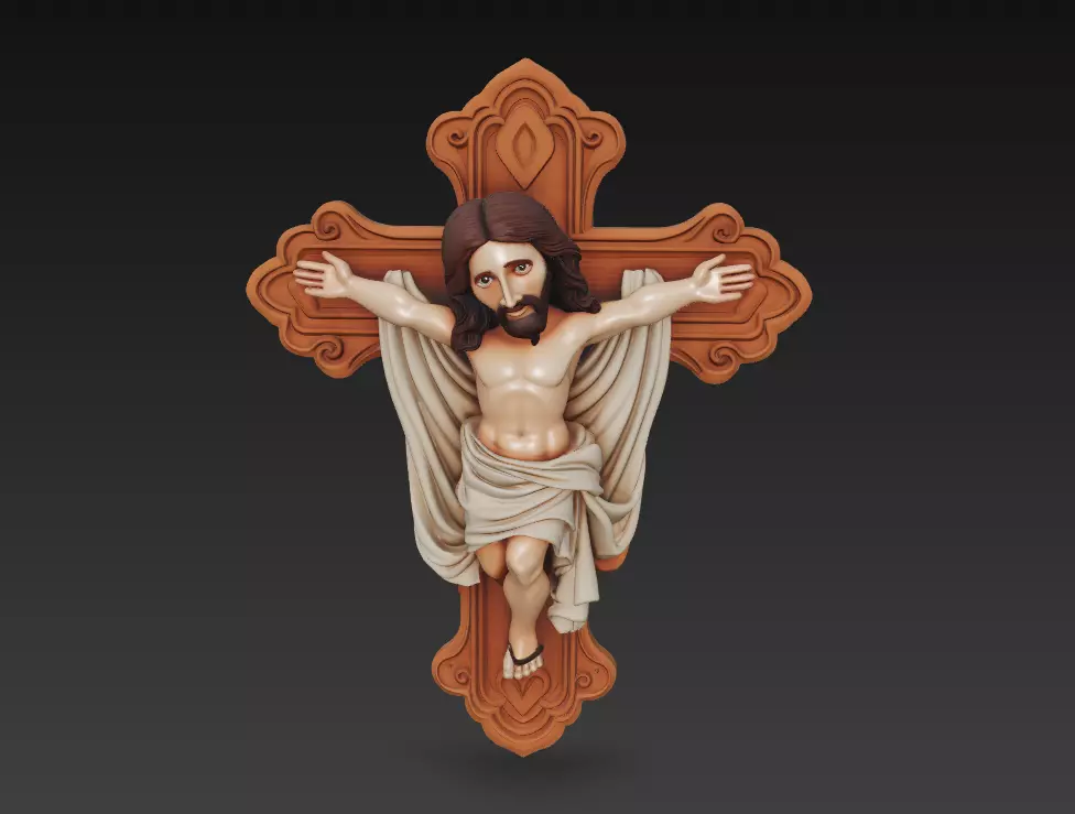 The Holy Savior Cross captures a stylized and gentle representation of Christ, blending sacred symbolism with soft, contemporary design.Carved with rounded forms and delicate drapery, it conveys both peace and divinity, making it ideal for spiritual art projects, church decoration, or 3D printable religious collections.