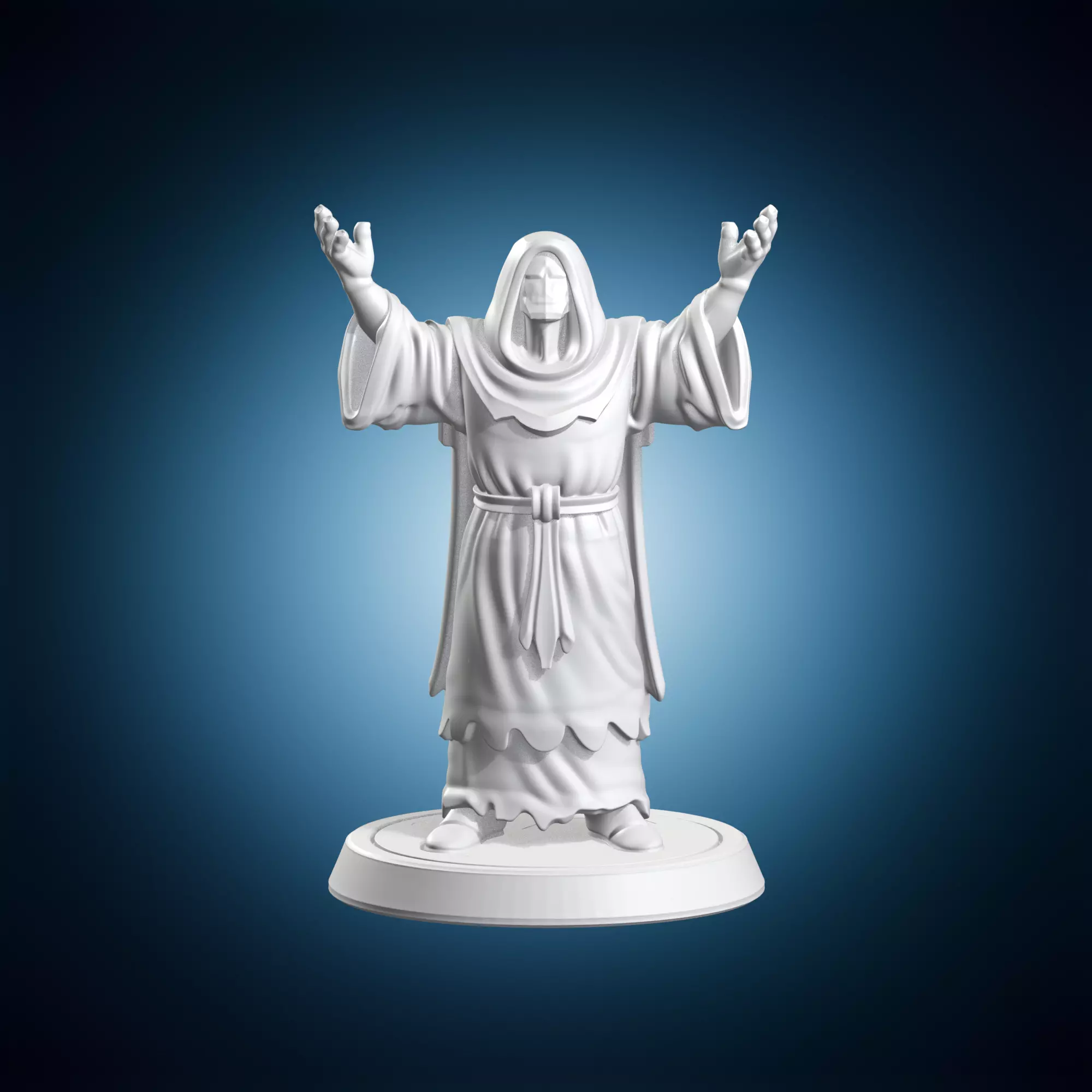 A mysterious and intriguing figurine depicting a hooded cultist worshipper in a ritualistic pose, raising their hands in devotion. The model is highly detailed and captures the essence of ancient mysticism and spiritual fervor. It is suitable for decorative purposes or as a unique collectible item. The sculptor has successfully conveyed a sense of serenity and introspection, making this piece stand out from others. The figurine is made of durable materials and is designed to withstand daily wear and tear. Its intricate design and realistic proportions make it an excellent addition to any collection.