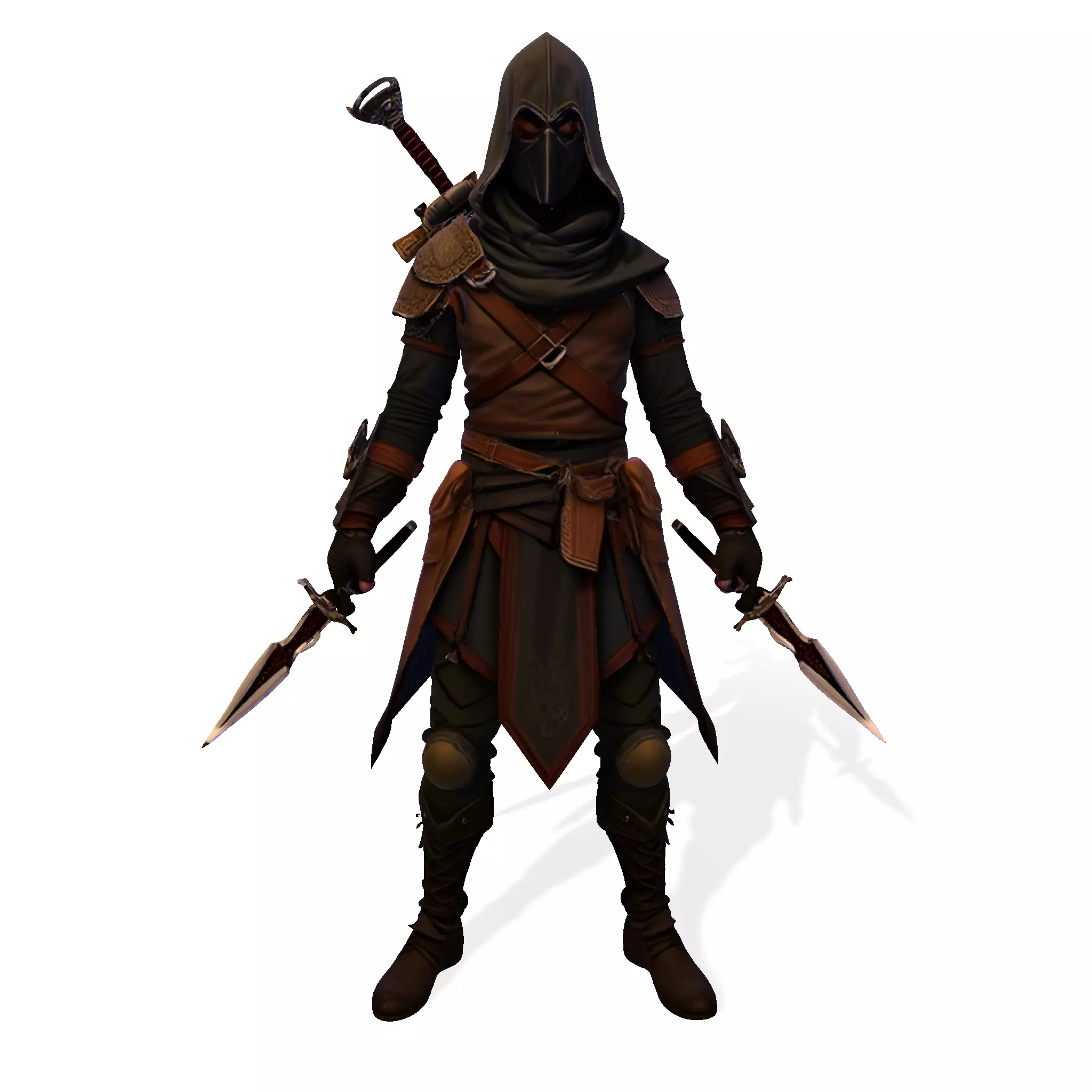 Original design inspired by classic rogue archetypes, with influences from medieval stealth operatives and modern fantasy games