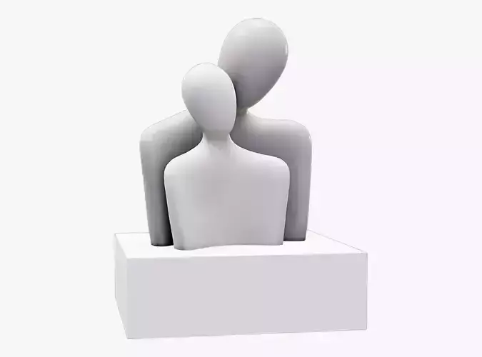 This statue is available in three separate parts: Male, Female, and Stand. It comes in three different versions. The first version includes a noisy texture and is provided in STL and decimated formats to ensure high printability with clear details. The second version features simplified models without noise provided in STL. The third version is UV-mapped and textured, available in a low-poly format.