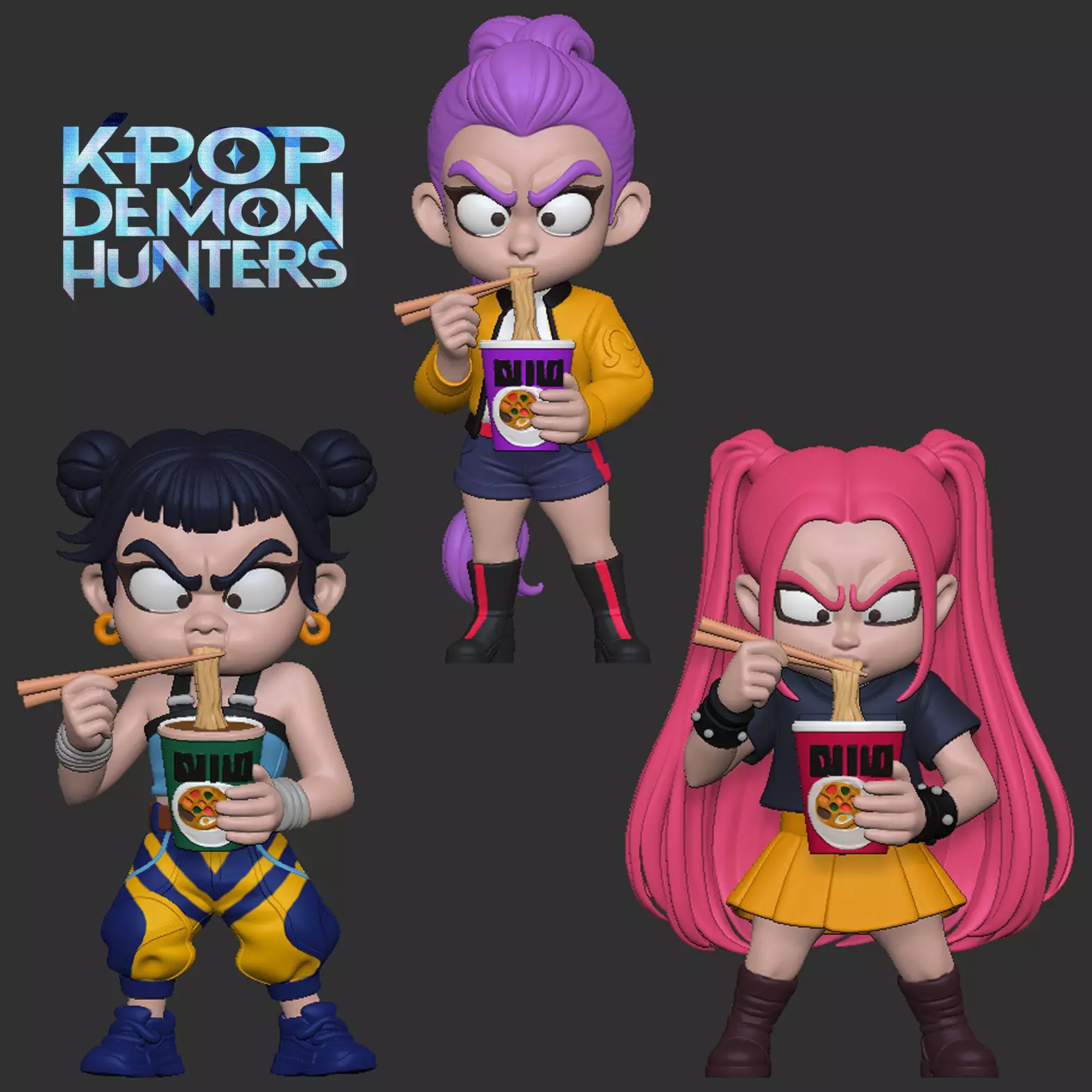 Huntrx - Chibi noodles - zoey mira rumi - kpop demon hunter 3D print model