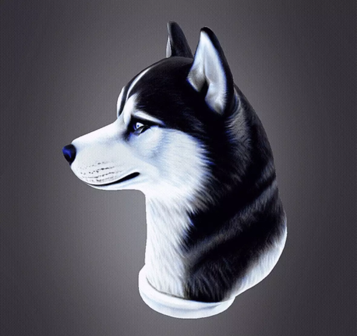 Embrace the majestic beauty of the husky breed with this captivating husky bust 3D model. Every detail of this noble and spirited companion has been meticulously crafted, from the alert ears to the piercing gaze. Whether you're an admirer of huskies or simply appreciate exquisite craftsmanship, this 3D model is perfect for displaying on your desk, shelf, or anywhere you want to add a touch of elegance. Suitable for 3D printing, digital rendering, or as a focal point in your home decor, this husky bust is sure to command attention and admiration."