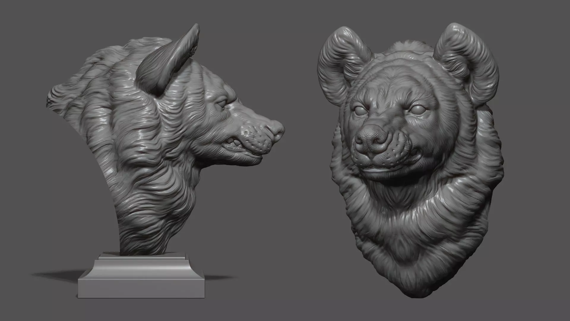 520K STL, OBJ triangulated mesh, Hyena angry head bust in parts
