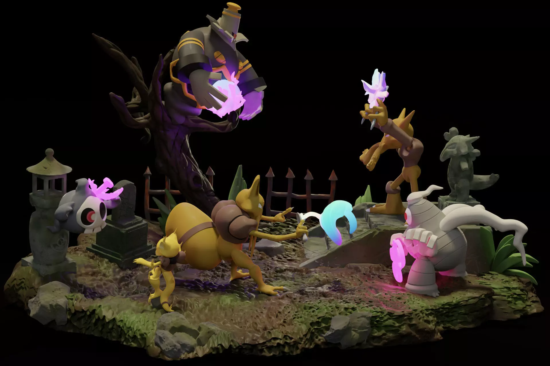 Pokemon Battle Diorama Ghost vs Psychic High Quality STL Files for 3D Printing Figurine Anime