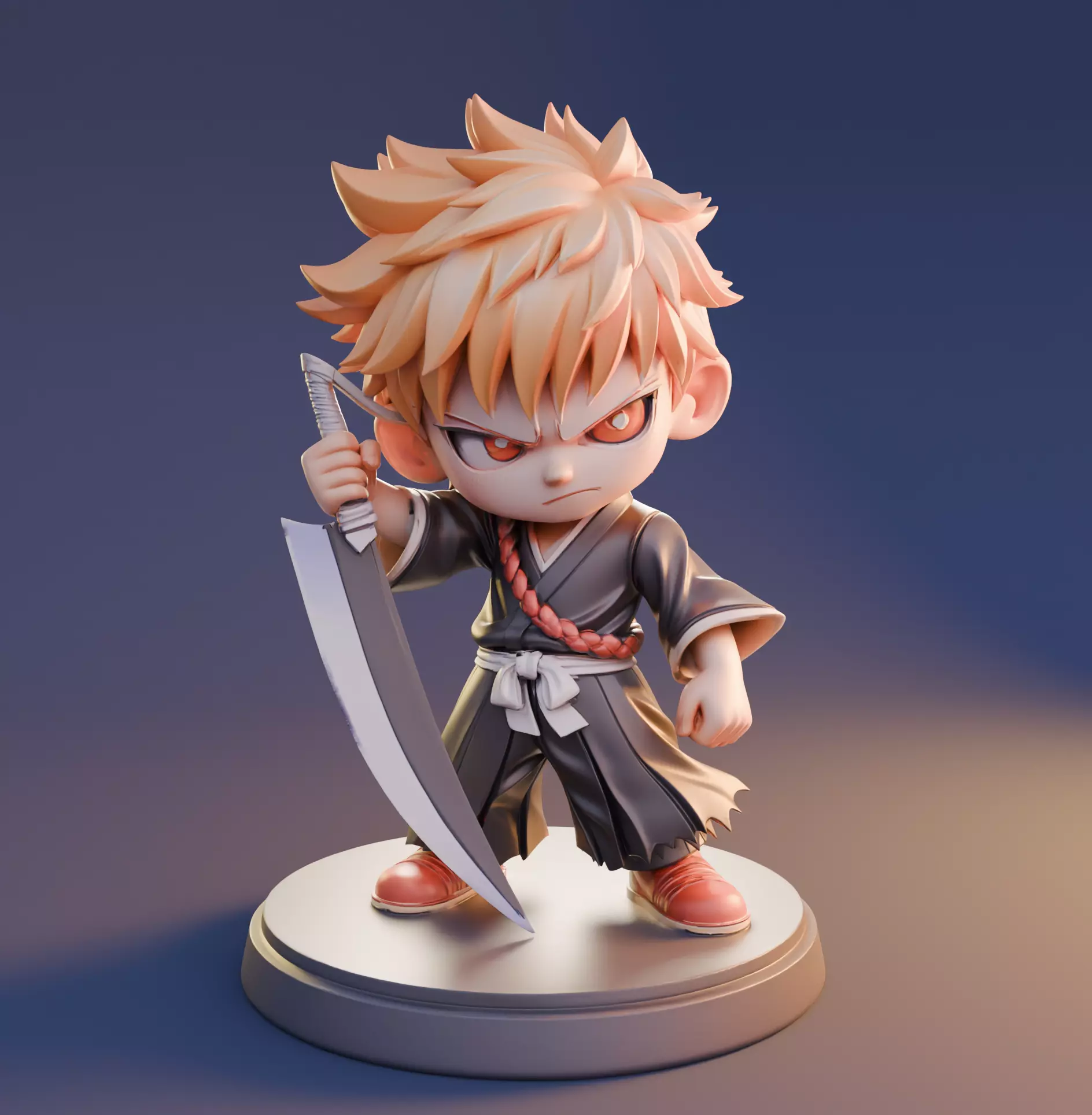 The power of a Shinigami, reimagined in an intense chibi style!This Ichigo Kurosaki 3D statue captures the Bleach protagonist in a bold chibi form, wielding his sword in a battle-ready stance. The angry eyes, spiky hair, and strong posture deliver pure Ichigo energy, perfectly balanced with chibi proportions.