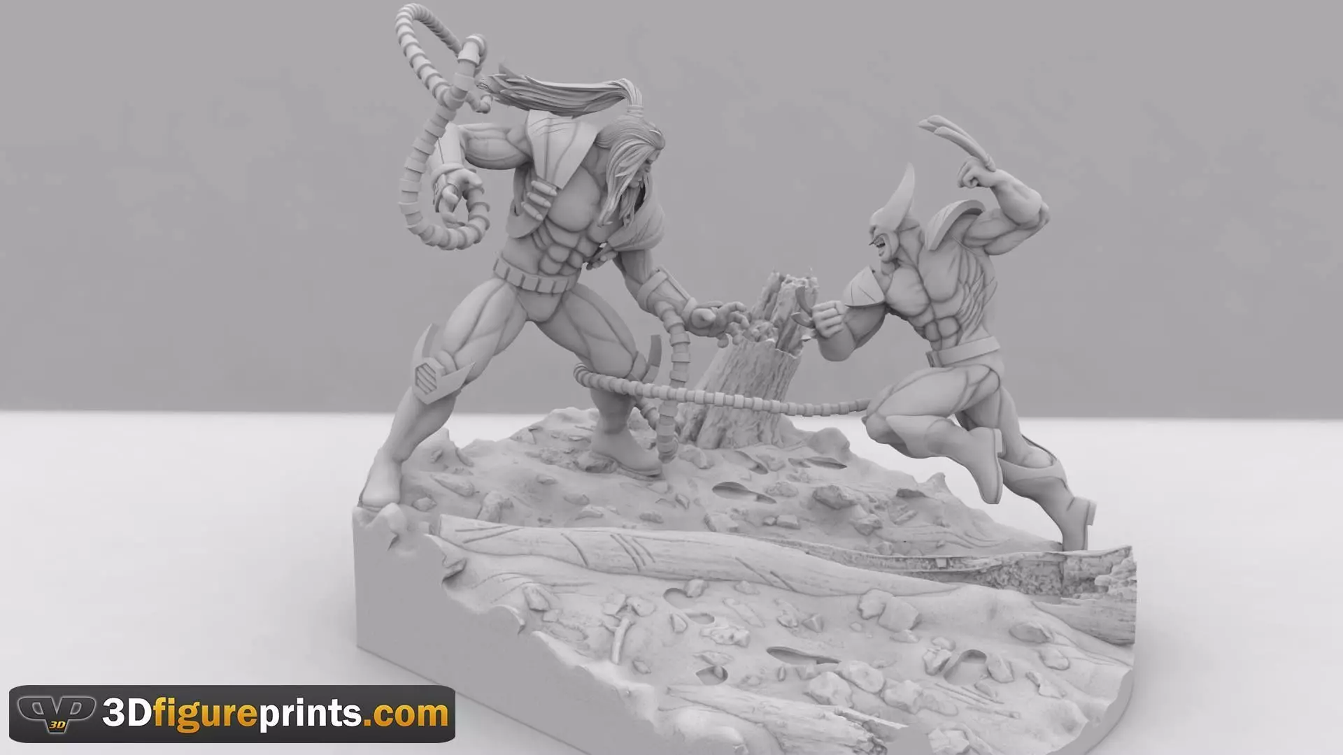 Fan Art 3d model of Omega Red versus Wolverine Cut Keyed and test printed official 3dFgiureprints fan art model