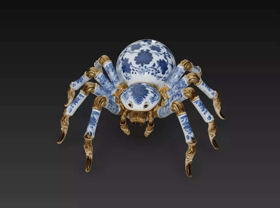 The Imperial Porcelain Spider 3D Model is a unique fusion of elegance and surreal design — blending the delicate artistry of traditional blue-and-white porcelain with the intricate form of a fantasy arachnid. Gold-accented limbs and floral patterns transform the creature into a masterpiece of refined craftsmanship and creativity.