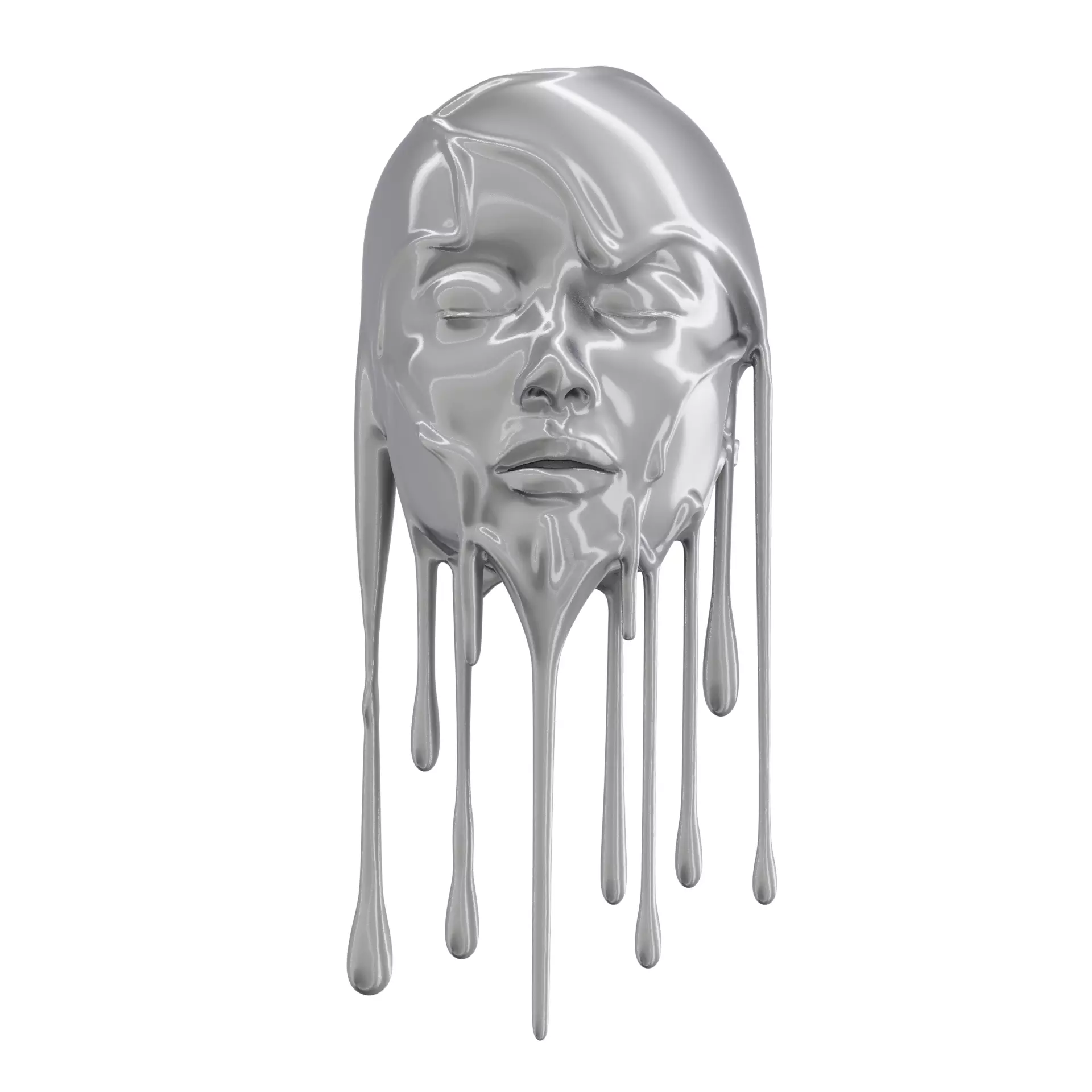 An elegant 3D model of a beautiful young woman’s face, covered in paint that slowly drips down, highlighting her delicate features, chiseled nose, and sensual lips. This model is perfect for creating unique decorative pieces, art installations, or adding a creative touch to any space.