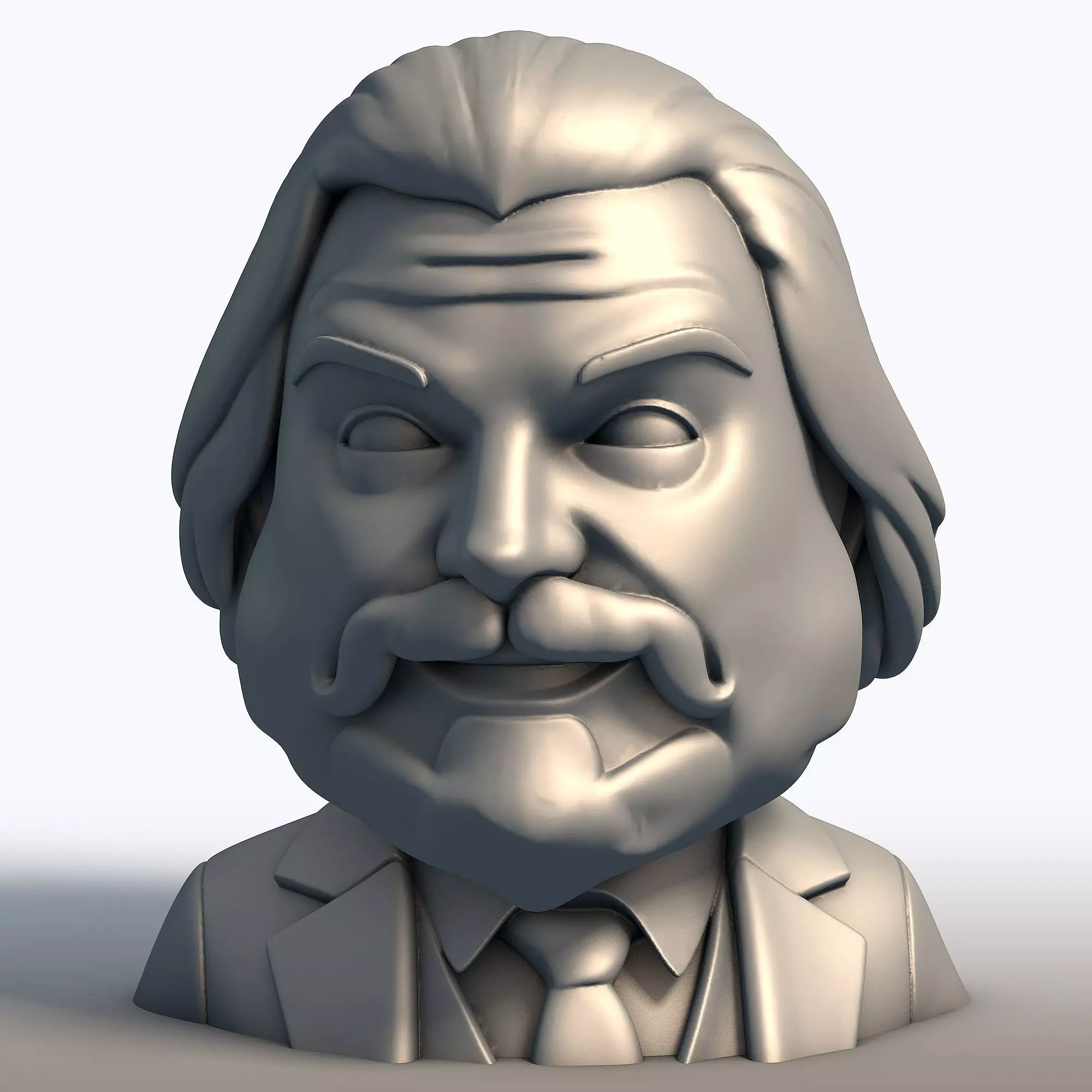 This model features a cartoon-like interpretation with strong facial expression, iconic hair and mustache details, making it perfect as a desk statue, display figurine, or gift for fans.